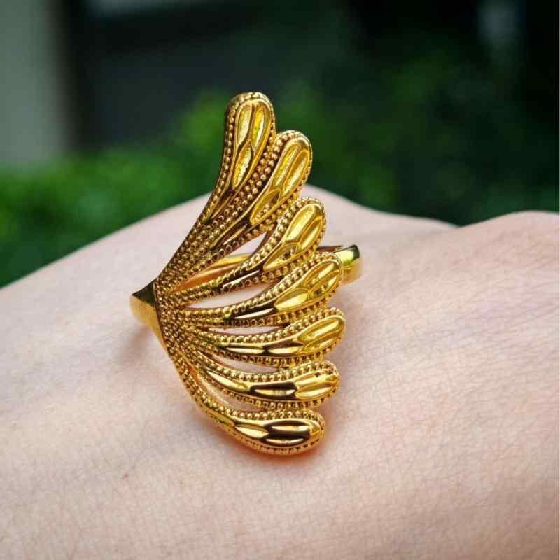 指輪 レディース 鳳凰モチーフ 大ぶり フラワー ゴールドメッキ オープンリング フリーサイズ レトロ ヴィンテージ メタルアクセサリー