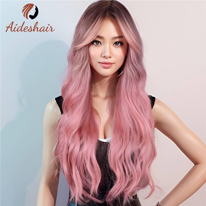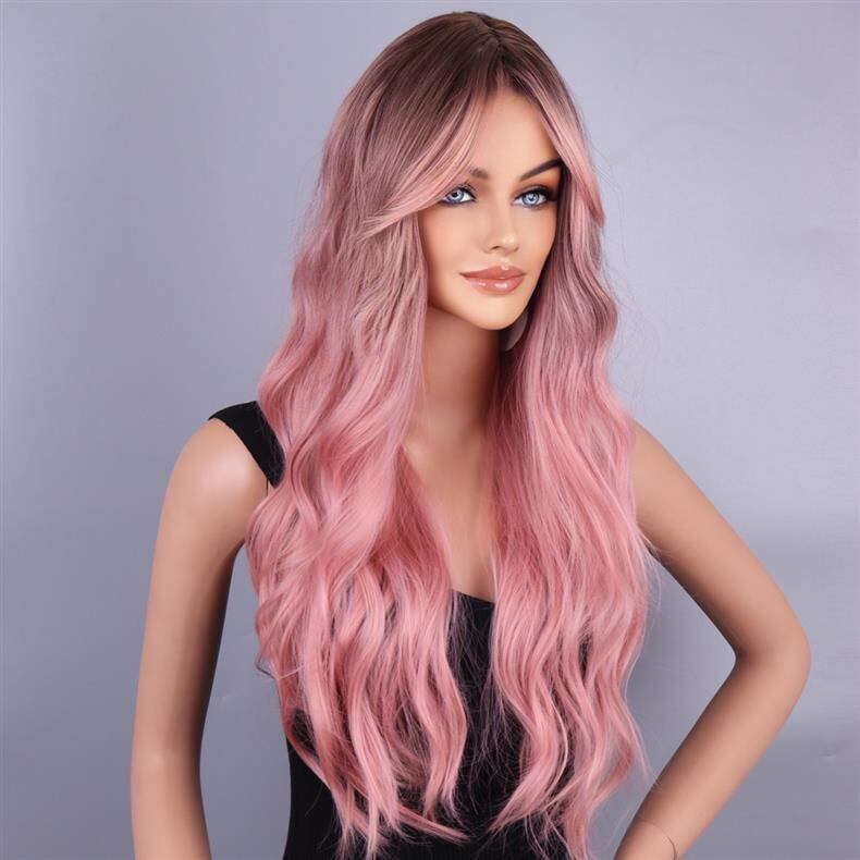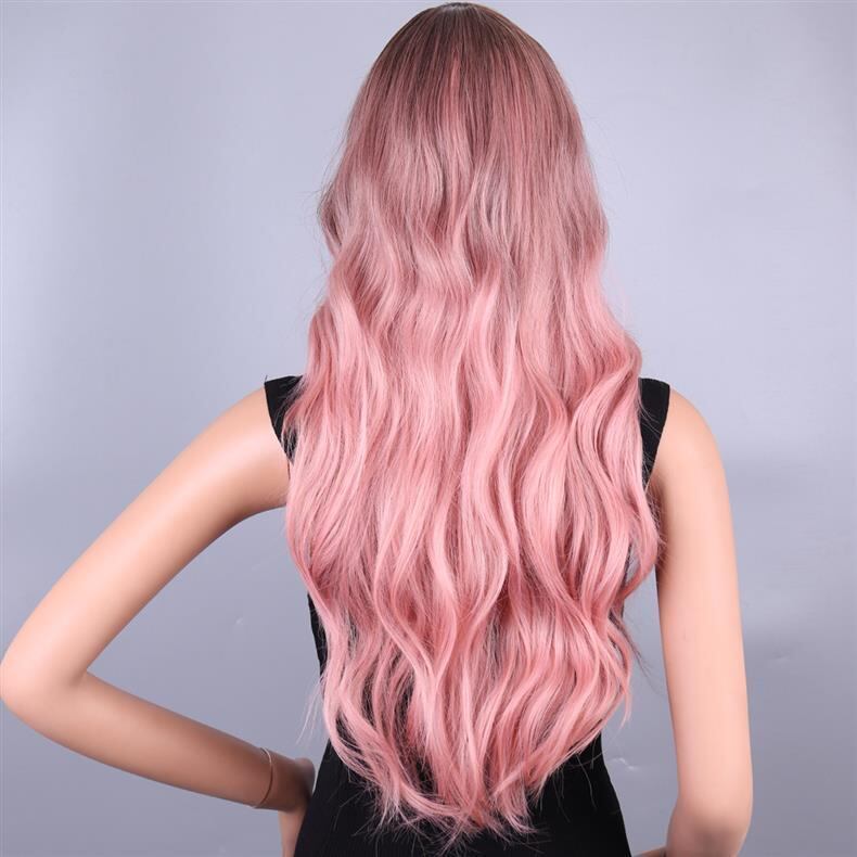 ウィッグ レディース ロング カール ピンク ブラック グラデーション レイヤーカット センターパート 自然な フルウィッグ ロリータ コスプレ ファッションウィッグ