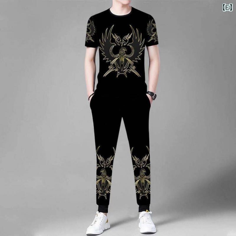 ・カテゴリ: メンズカジュアルセットアップ・スタイル: カジュアル・主な素材: ポリエステル・生地の厚さ: 裏起毛・トップス種類: ニット・袖丈: 半袖・パンツ丈: 九分丈・着用シーン: カジュアル・柄展開: ドラゴンボーン、ライオンシールド、クラウンライオンシールド、ライオンヘッドトーテム、雄大な鷲・サイズ展開: M、L、XL、2XL、3XL、4XL