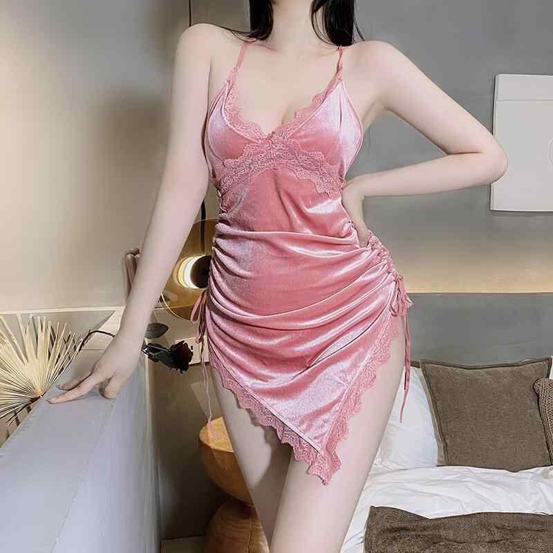 ランジェリー レディース セクシー レース キャミソール スリップ オープンバック ベロア ベルベット ナイトウェア ルームウェア パジャマ チャイナドレス風 コスチューム