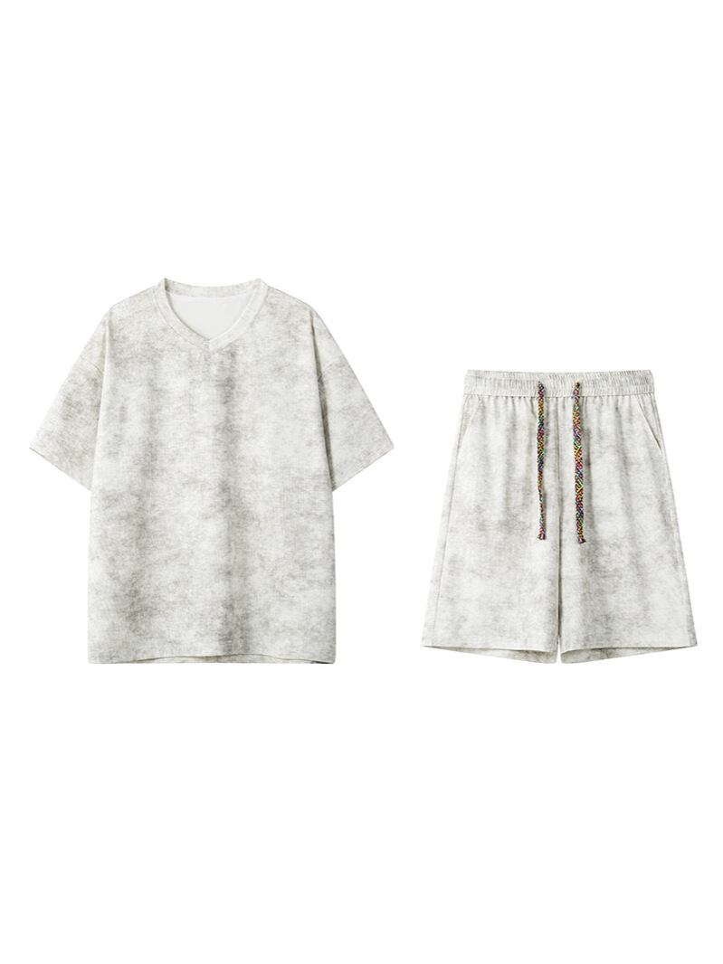 セットアップ メンズ 半袖Tシャツ ショートパンツ アメリカンストリートスタイル カジュアル クール 高級感 タイダイ染め ヴィンテージ加工 カップル ペアルック 夏用 コットン スポーツ 普段使い