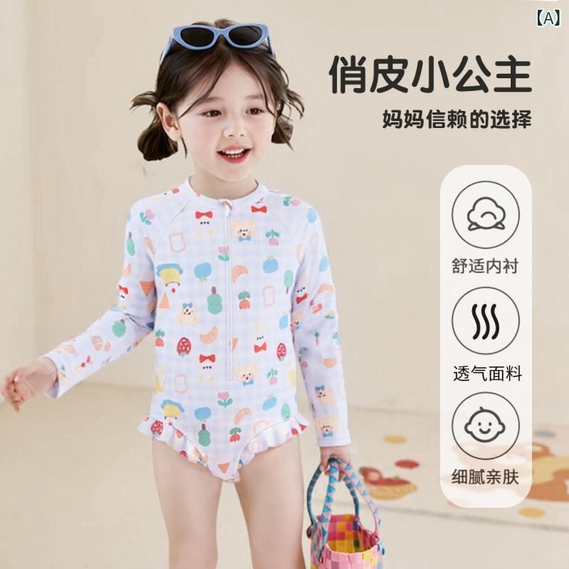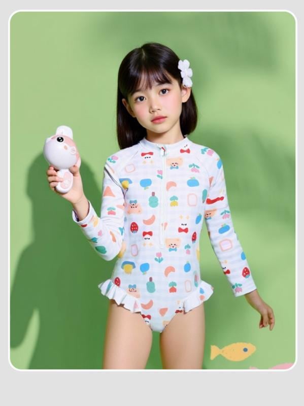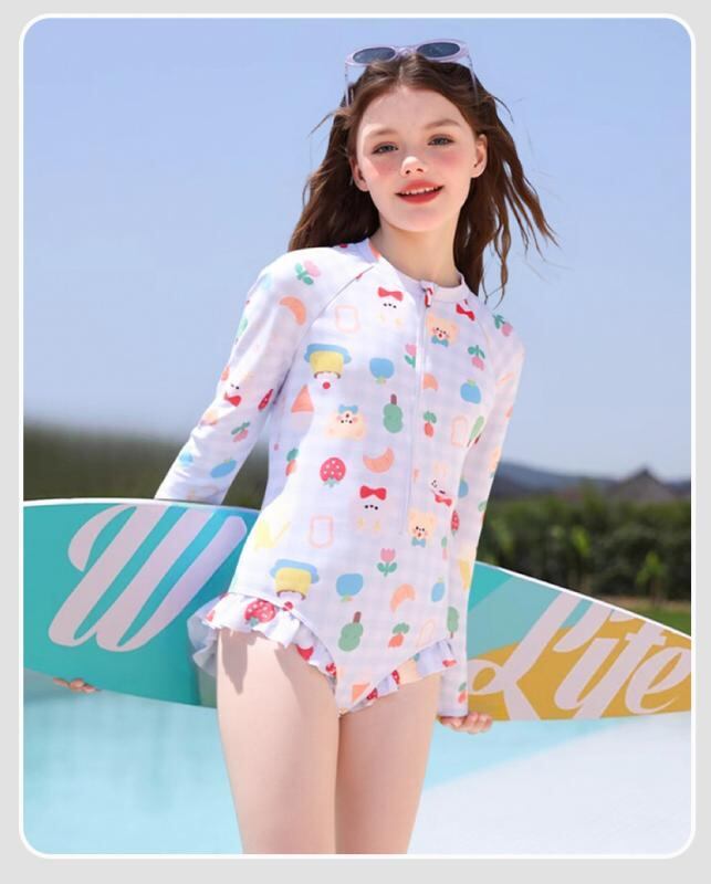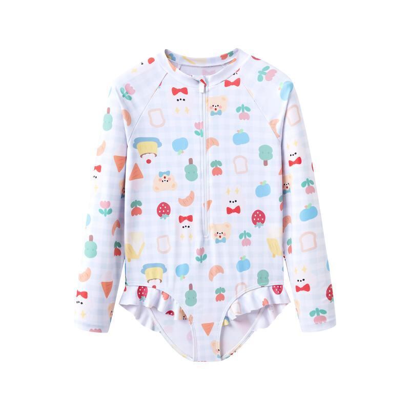 水着 キッズ ベビー 女の子 長袖 ワンピース UVカット 日焼け防止 いちご クマ柄 小花柄 ポリエステル 速乾 伸縮性 プール 海水浴 水遊び ビーチ レジャー