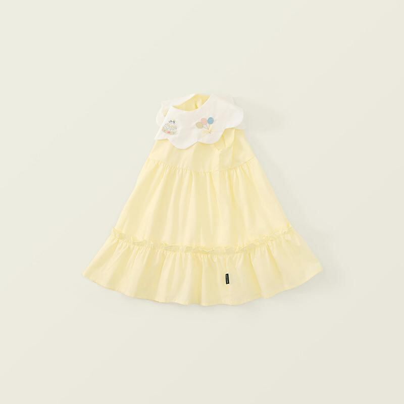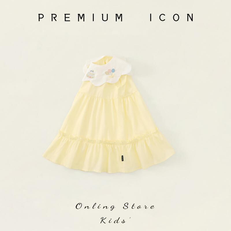 ワンピース 女の子 子供服 ガールズ 襟付き ノースリーブ Aライン 無地 スイート おしゃれ かわいい 韓国風 夏服 サマードレス ポリエステル 綿混 柔らか素材 イエロー