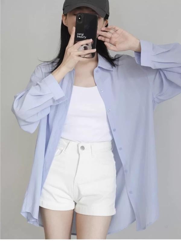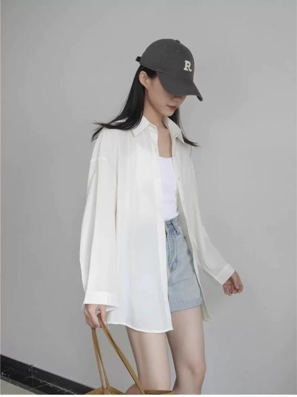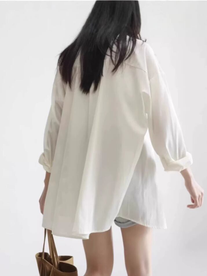 シャツ レディース リヨセルテンセル綿素材 UVカット 通気性 シワになりにくい 薄手 軽量 ドレープ感 ゆったりシルエット ミドル丈 前開き ポロ襟 無地 ボタン きれいめ 上品 通勤スタイル 都会的 カジュアル 着回し力抜群