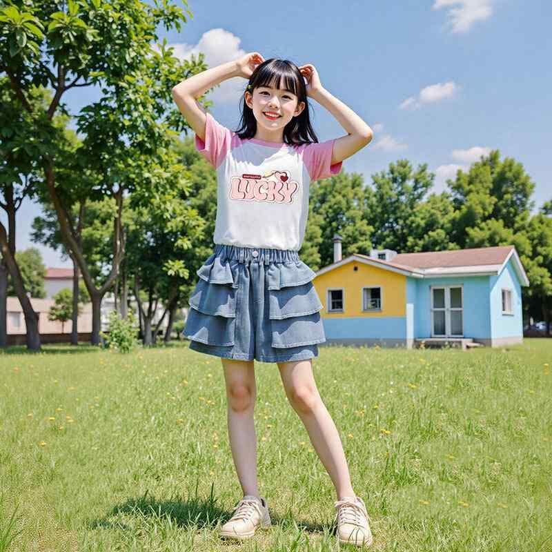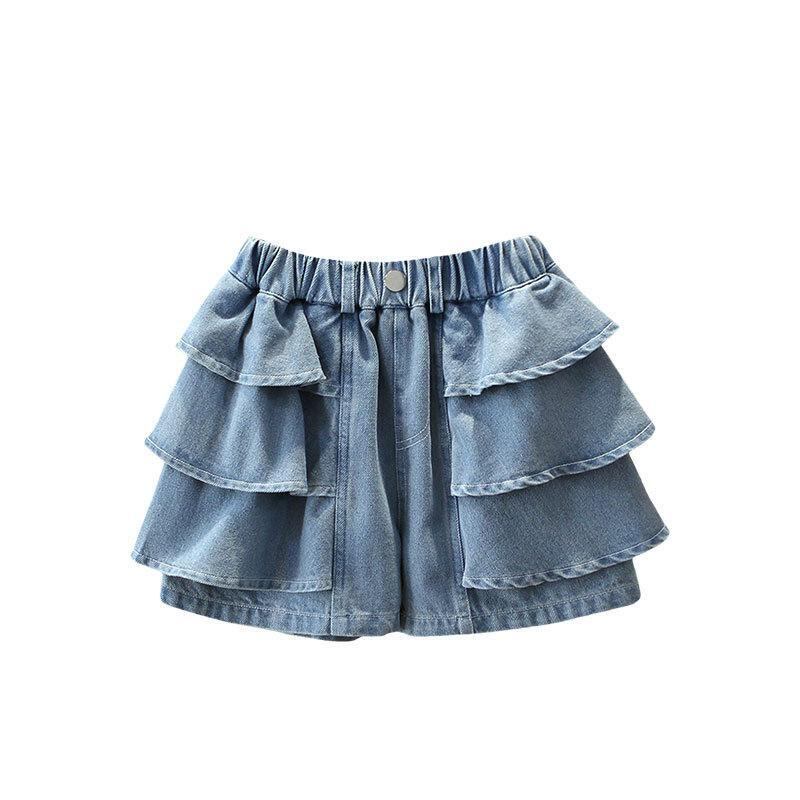 スカパン 女の子 キッズ ジュニア デニム ショートパンツ 薄手 夏物 おしゃれ カジュアル 綿混 無地 ソフト加工 ミドルウエスト ゴムウエスト