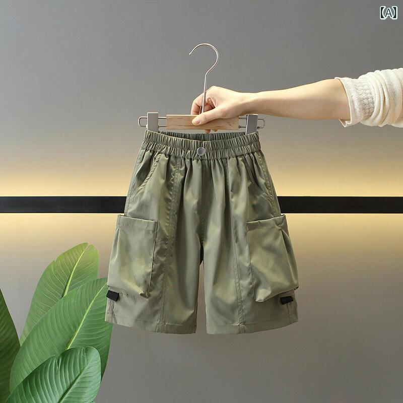 キッズ 男の子 ハーフパンツ 夏 薄手 五分丈 ジュニア ショートパンツ ポリエステル 無地 カジュアル 涼しい 快適 ウエストゴム ミドルウエスト 通学 普段使い カーゴパンツ