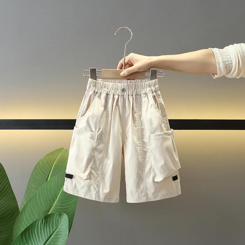 パンツ キッズ 男の子 夏用 ハーフパンツ 5分丈 カーゴパンツ カジュアル 薄手 ポリエステル ウエストゴム 無地 普段使い ミドルウエスト カーキ ベージュ