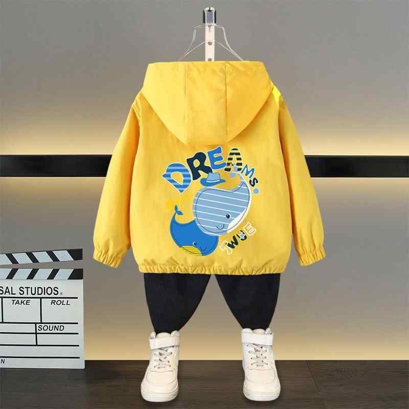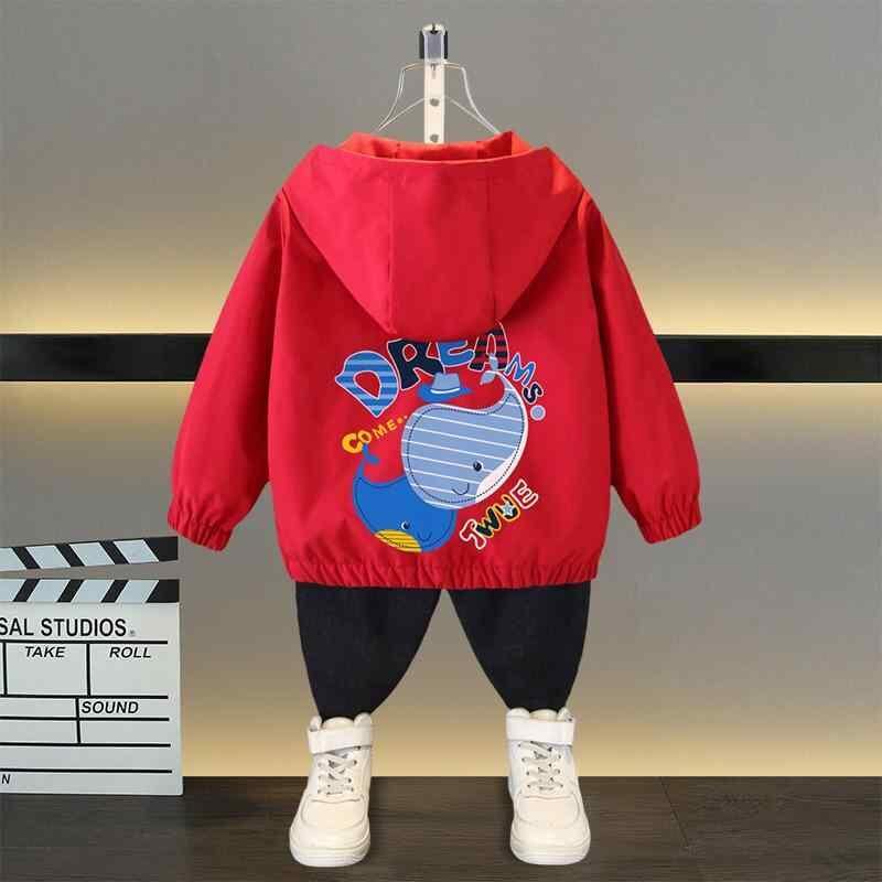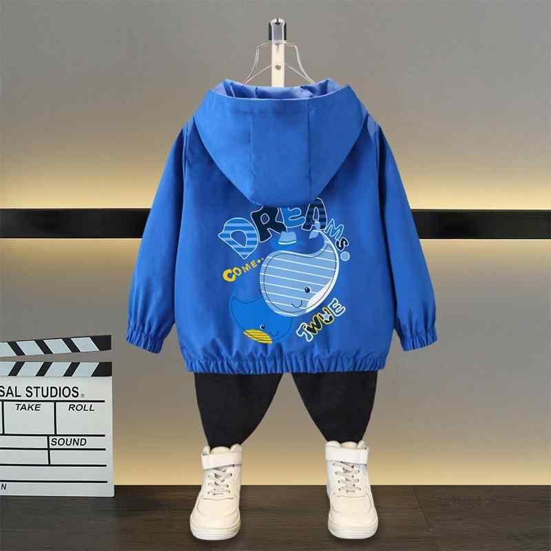 ジャケット キッズ 男の子 アウター マウンテンパーカー ウインドブレーカー 春秋 フード付き フルジップ 長袖 ポリエステル ショート丈 カジュアル キャラクター クジラ柄 アルファベット レッド ブルー イエロー