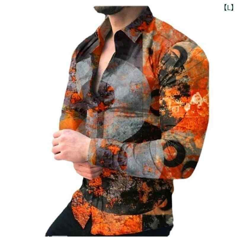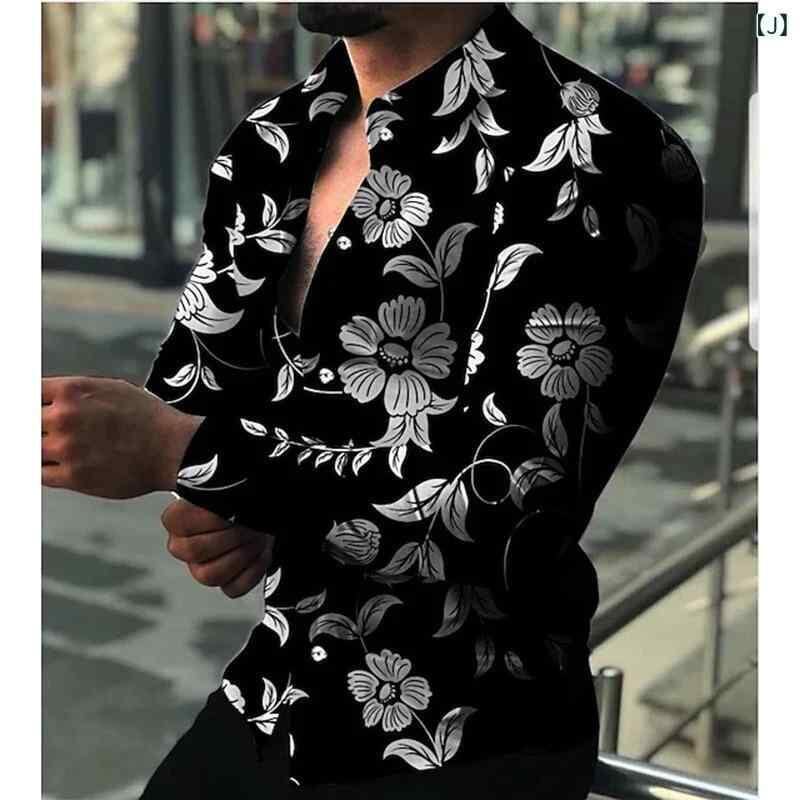 シャツ メンズ 男性用 長袖 3Dプリント 花柄 小花柄 ポリエステル素材 洗濯可能 ルーズフィット 高級感 おしゃれ カジュアル スポーツミックス 普段使い お出かけ