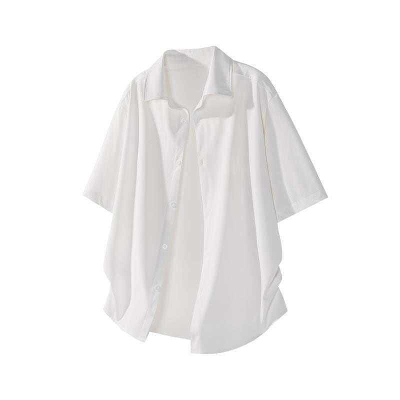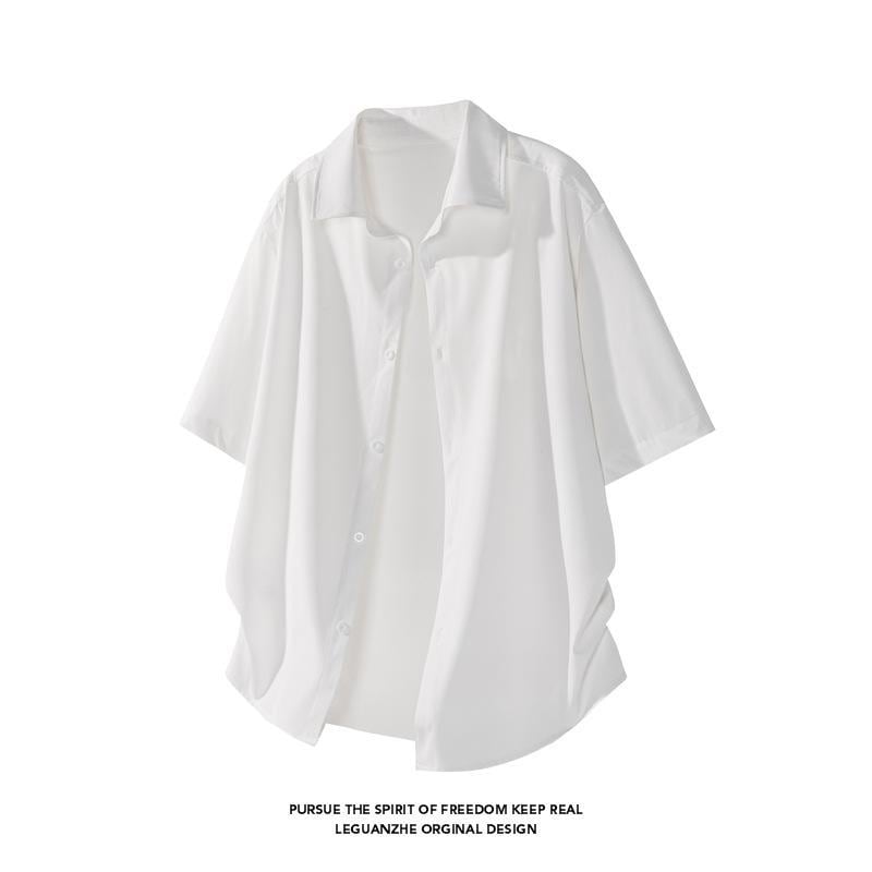 シャツ メンズ 半袖 接触冷感 無地 レギュラーカラー ポリエステル ゆったり ルーズフィット ノーアイロン 通勤 ビジネス オフィスカジュアル ホワイト ブラック 大きいサイズ
