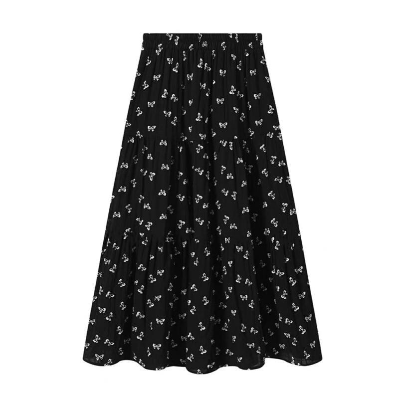 スカート レディース 大きいサイズ ゆったり 体型カバー 小花柄 総柄 リボン Aライン フレア ミモレ丈 夏 着痩せ デザイン性 着回し 万能 上品 通勤 オフィス 普段使い ポリエステル