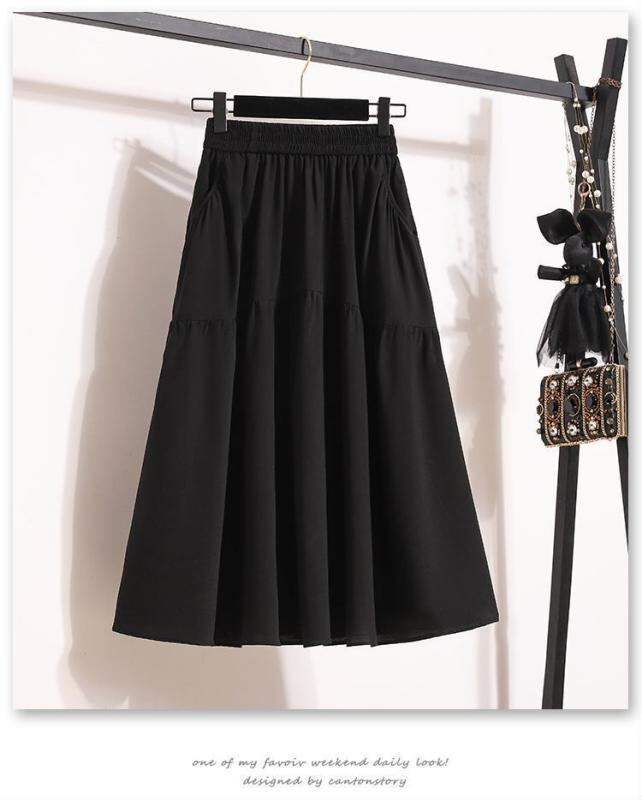 スカート レディース Aライン フレアスカート ミモレ丈 ミディ丈 ハイウエスト 高級感 落ち感 ドレープ感 体型カバー 着痩せ ウエストゴム ポケット付き 夏 通勤 オフィス きれいめ 大人カジュアル
