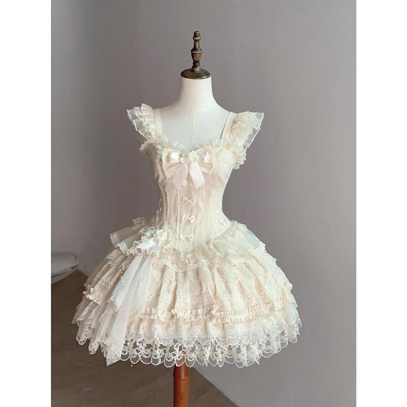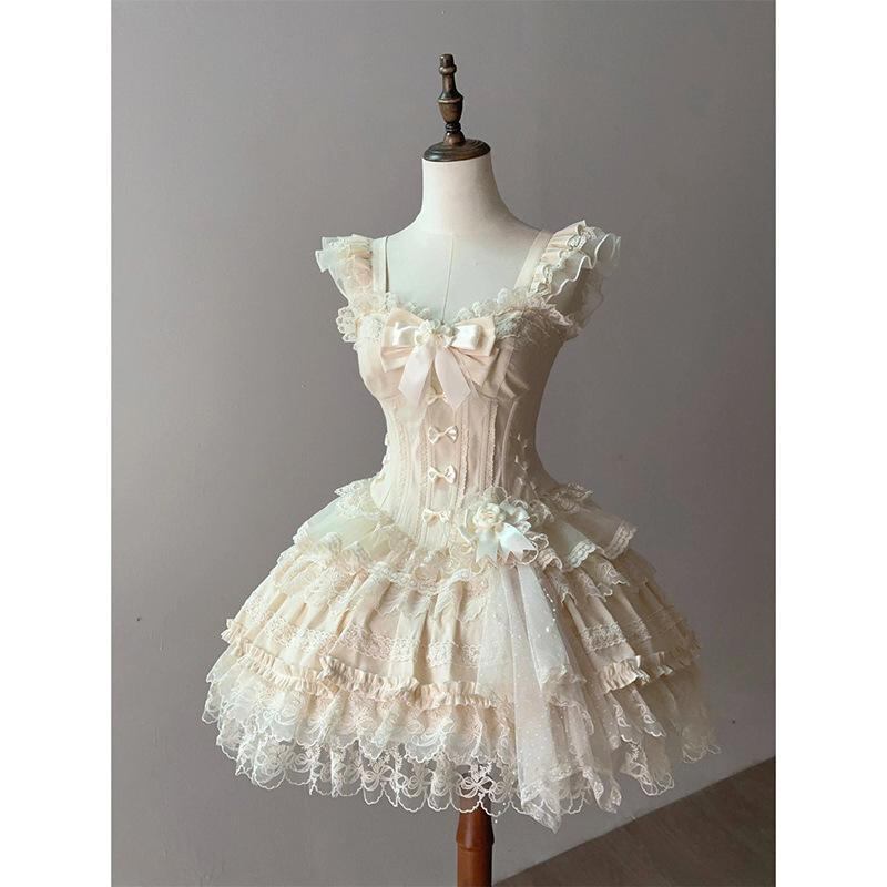 ワンピース レディース ロリータ かわいい リボン レース キャミソール ティアード ミニ丈 フレア ボリューム ポリエステル エレガント 上品 ハイウエスト ノースリーブ きれいめ お出かけ デート