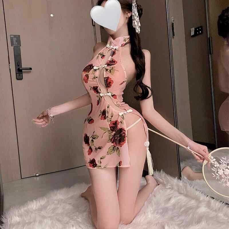 チャイナドレス レディース セクシー 純欲系 レトロ 新中華風 ハイウエスト スリット 情趣ランジェリー ナイトドレス コスチューム