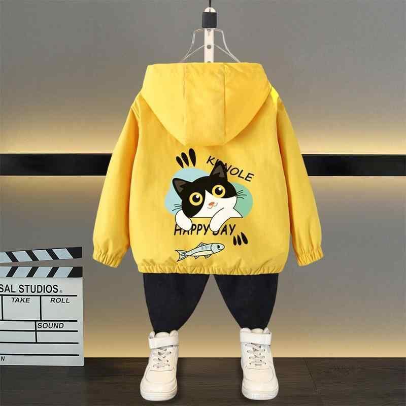 ジャケット キッズ 男の子 春秋 フード付き ウィンドブレーカー ブルゾン カジュアル 防風 アウター ジップアップ 長袖 綿混紡 ポリエステル 柔らか素材 キャラクター柄 アルファベット柄 通園 普段使い スポーティー イエロー ネイビー ブルー