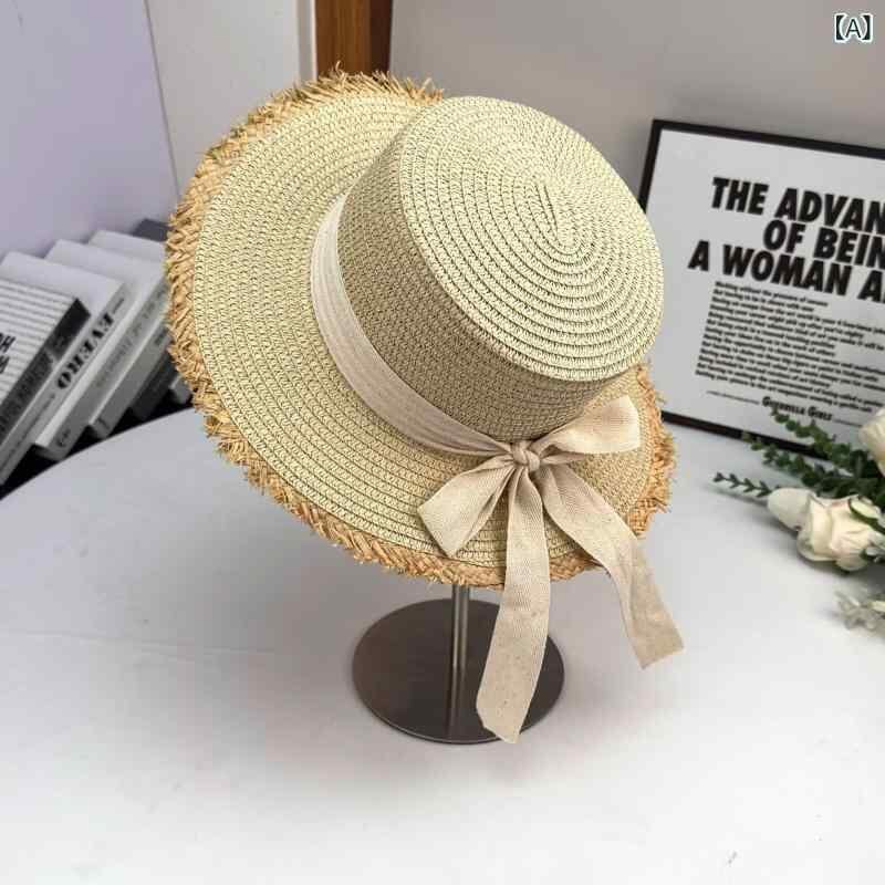 麦わら帽子 レディース 夏 フレンチ 平つば ワイドブリム ストローハット UVカット 日よけ 紫外線対策 ビーチハット 通気性 高級感 海 リゾート バカンス 旅行 普段使い デイリー 通勤 きれいめ カジュアル 手編み ポリエステル繊維