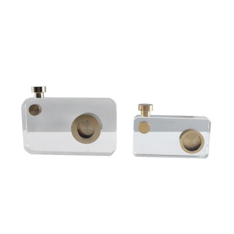 クリスタル オブジェ カメラ型 モダン 高級感 ゴールド 白水晶 透明 卓上 デスク 寝室 書斎 リビング オフィス インテリア装飾 飾り
