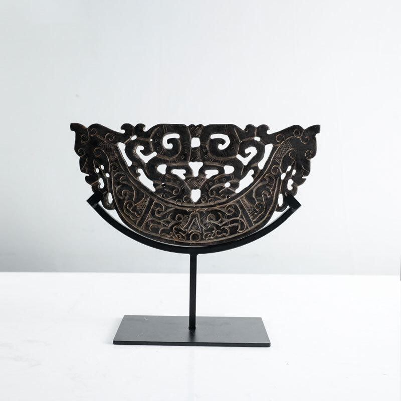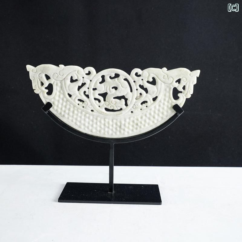 インテリアオブジェ モダンチャイニーズスタイル シンプルデザイン 独創的な彫刻 玉璧 円盤型 天然石 ストーン リビング 玄関 ホテル 店舗飾り 白 赤 緑 茶色