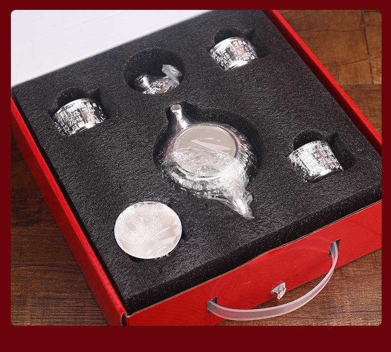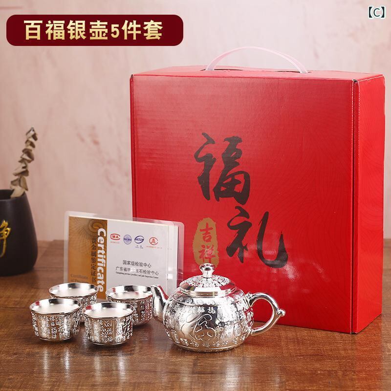 銀食器セット 銀碗 銀スプーン 銀箸 銀急須 百福文様 縁起物 開運 富裕 繁栄 高級感 家庭用 食卓用 お祝い 記念品 モダン シンプル 上品