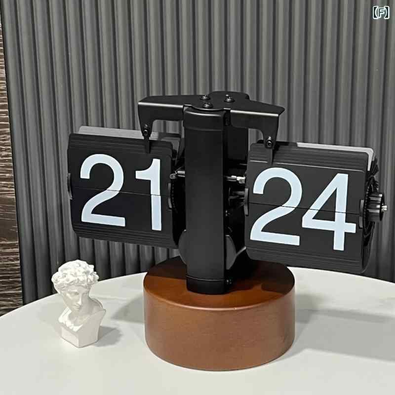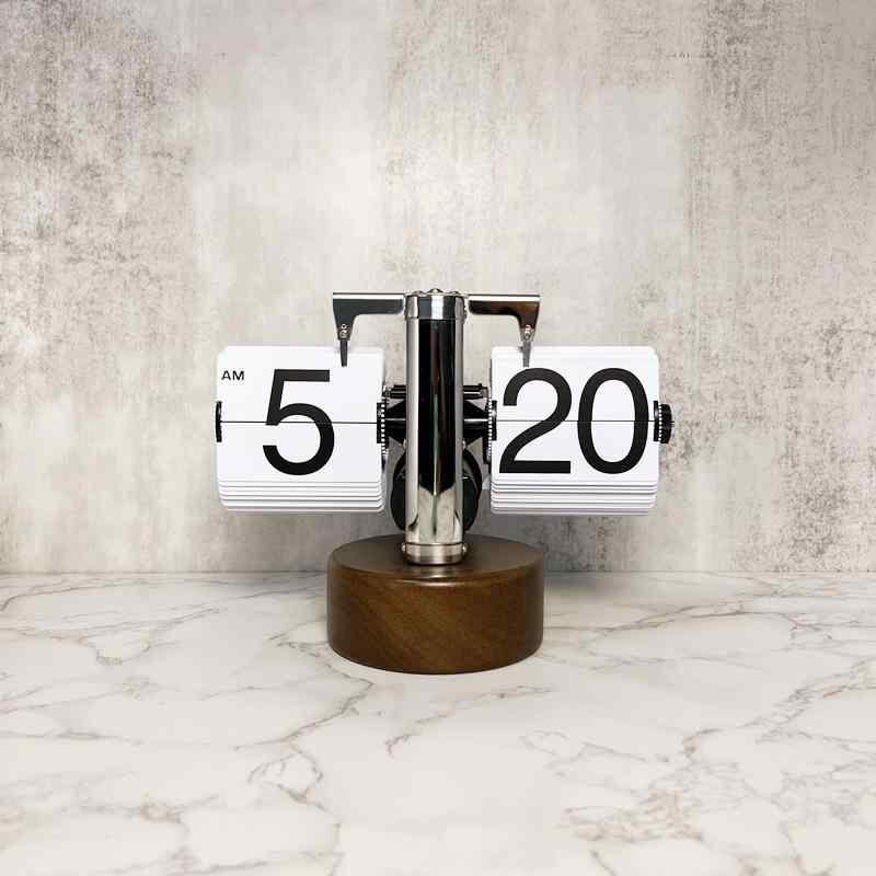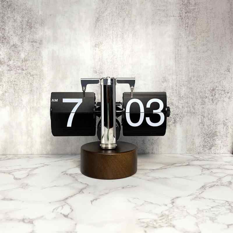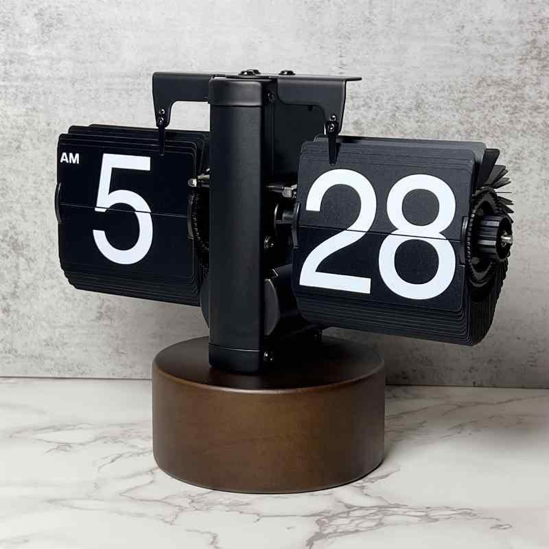 パタパタ時計 北欧 レトロ フリップクロック シンプル ミニマリスト デザイン 卓上時計 置き型 無垢材 木製台座 クォーツ式 電池式 デジタル表示 リビング 寝室 書斎 インテリア ブラック ウォールナット ホワイト ABS 金属