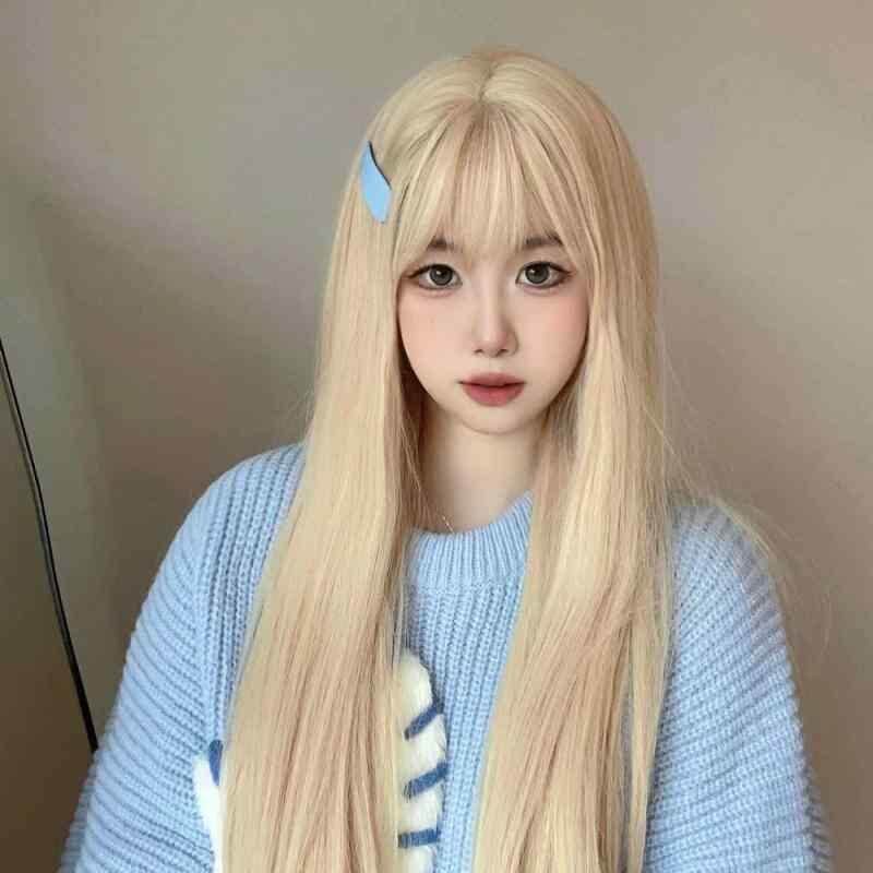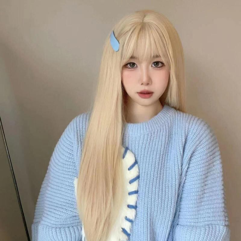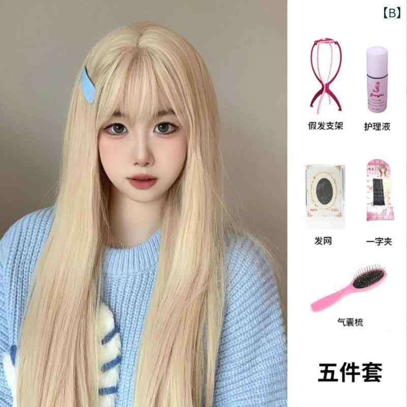 ウィッグ レディース プラチナブロンド ロングストレート ぱっつん前髪 ロリータ フルウィッグ 高温耐熱ファイバー ガールズグループ風 ナチュラル サラサラ イメチェン ファッション デイリー コスプレ イベント
