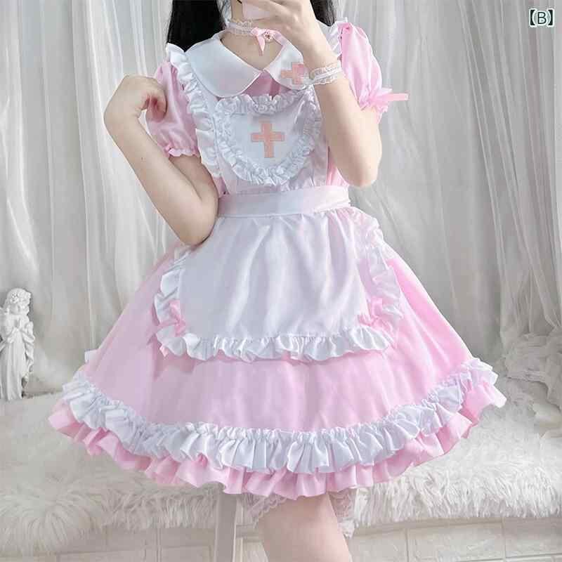 コスプレ衣装 レディース ロリータ 十字架 メイド服 スカイブルー ワンピース ドレス 甘ロリ かわいい ポリエステル製 フリル レース イベント アニメ ゲーム 撮影 仮装パーティー