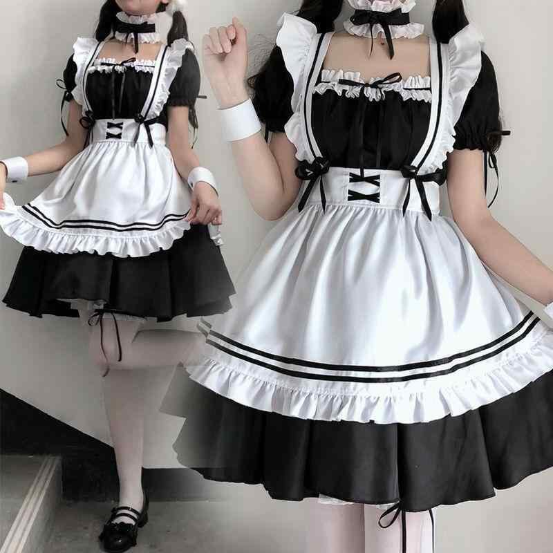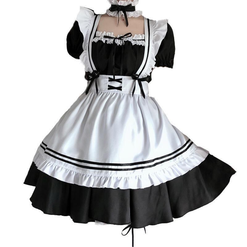 メイド服 レディース コスプレ 学生風 ロリータ ファッション かわいい ワンピース フレアスカート ドレス 大きいサイズ ゆったりサイズ アニメ風 モノトーン セットアップ 普段使い デイリー