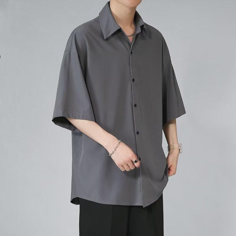 シャツ メンズ 半袖 高級感 カジュアル 普段使い ゆったり 無地 大きいサイズ ドレープ感 開襟 ポリエステル混紡素材 ウォッシャブル 前開き ブラック ホワイト グレー