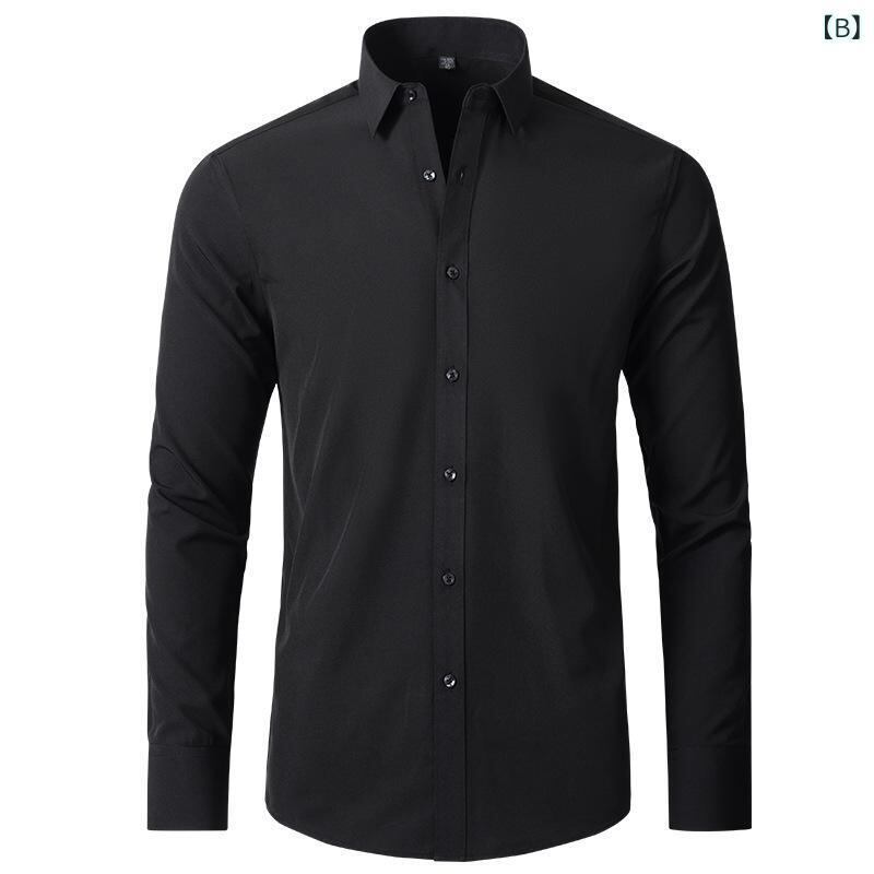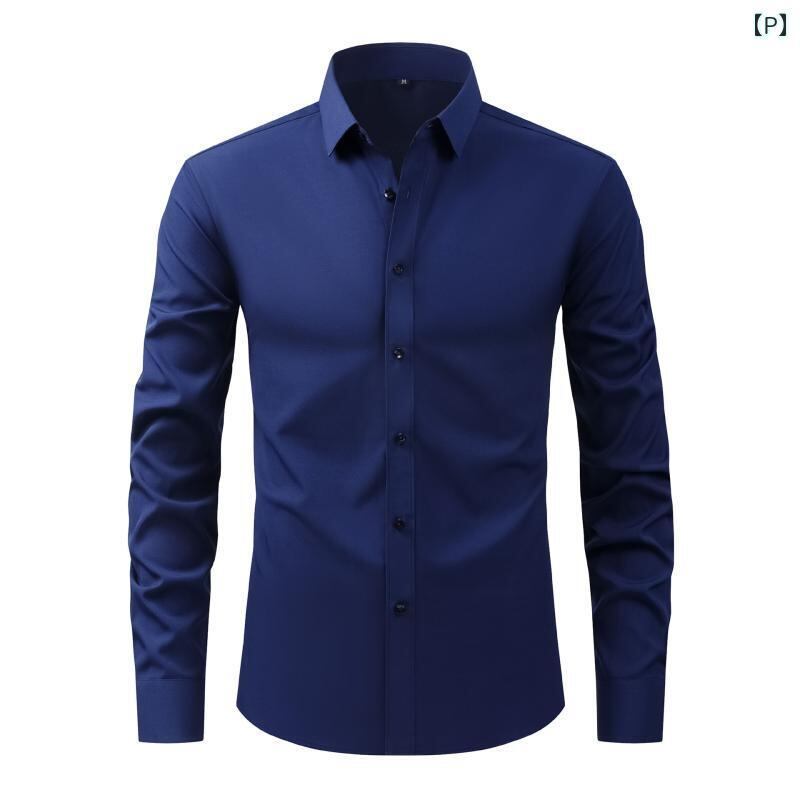 シャツ メンズ 長袖 4WAYストレッチ ノンアイロン 防シワ ビジネス オフィス 通勤 吸湿速乾 薄手 軽量 スリムフィット ポリエステル 角襟 デイリーユース 普段使い