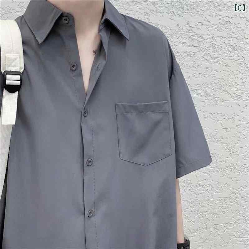 ・カテゴリ: シャツ・スタイル: 香港ストリート・デザイン: カーディガン・フィット: ルーズ・ネックライン: 襟付き・柄: 無地・厚さ: 薄手・主な素材: ポリエステル95.5%・適用シーン: 日常・カラー展開: ホワイト、ブラック、ダークグレー・サイズ展開: M、L、XL、2XL、3XL・対象季節: 夏・対象: 青年男性