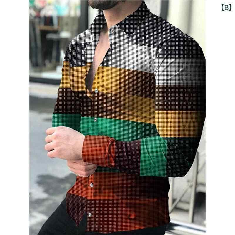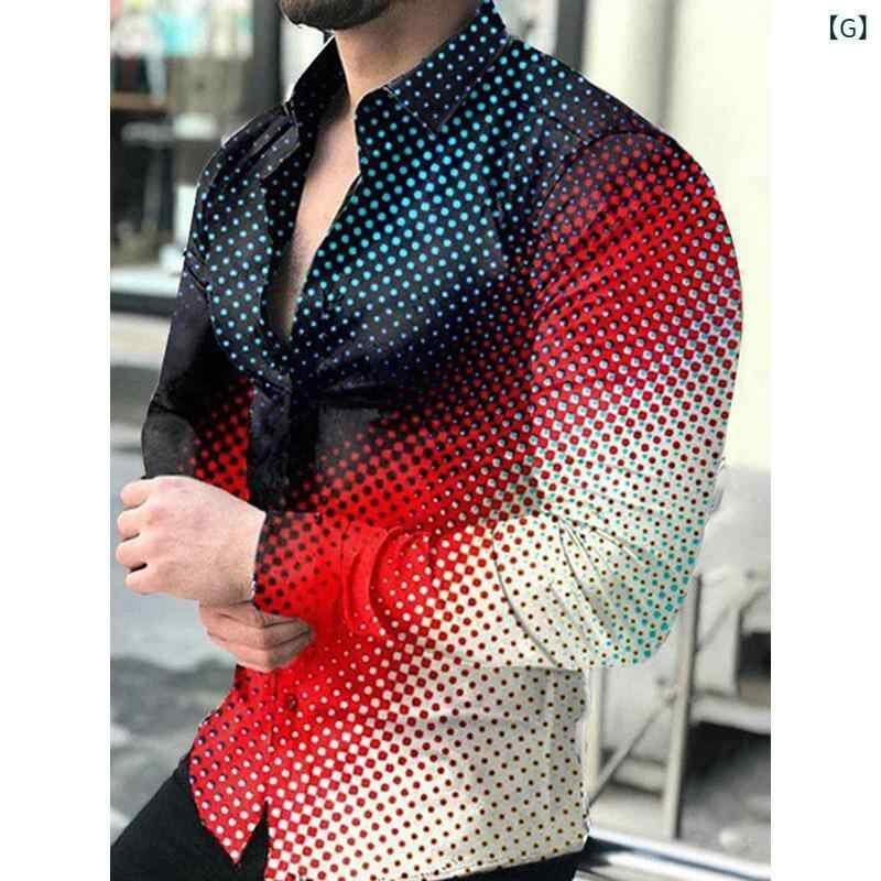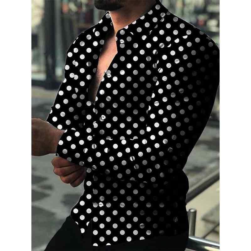 シャツ メンズ 長袖 襟付き ドット柄 水玉模様 デジタルプリント 総柄 カジュアルスタイル ルーズフィット ビッグサイズ 大きいサイズ ゆったり ポリエステル素材 ストレッチ 伸縮性 通気性 春秋 普段使い デイリーユース