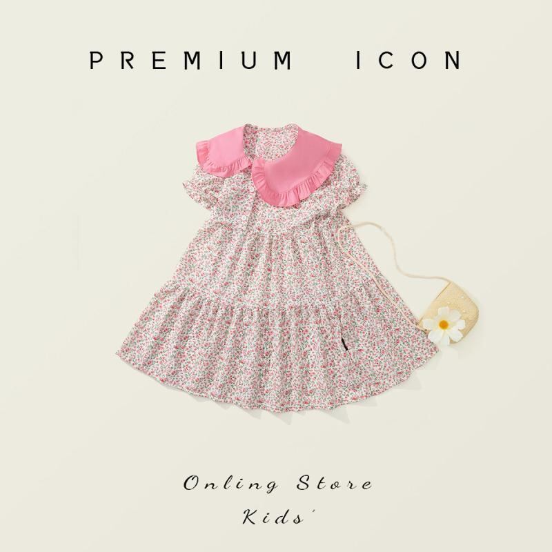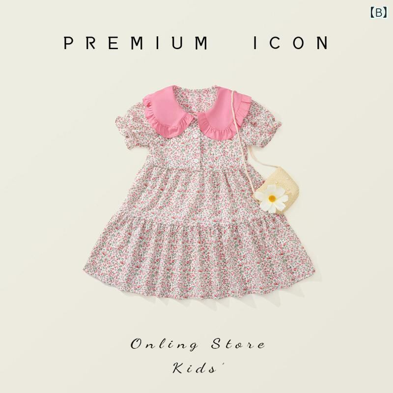 ワンピース キッズ 女の子 小花柄 フラワー柄 半袖 Aライン 田園風 森ガール風 ナチュラル おしゃれ かわいい カジュアル ポリエステル素材 普段使い お出かけ服 3歳 8歳 幼稚園 小学生