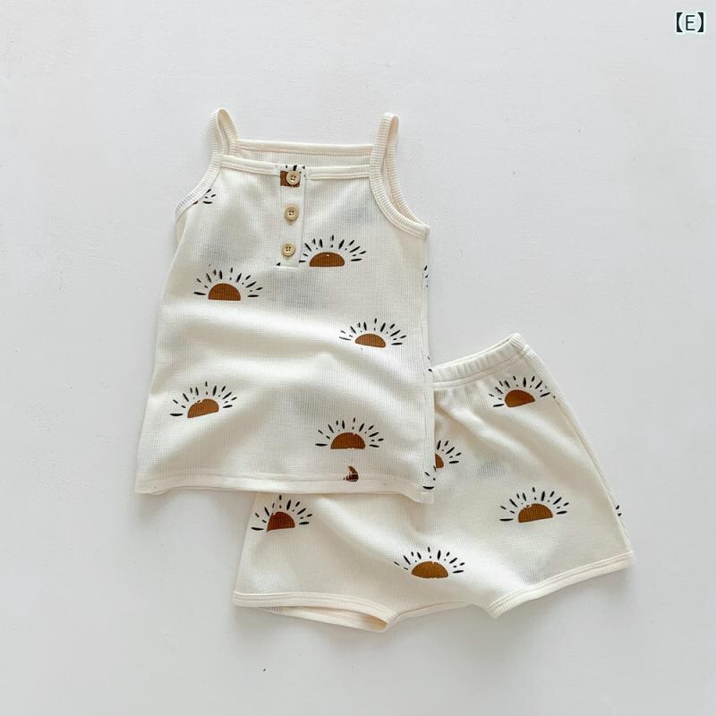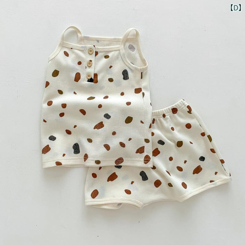 ルームウェア 部屋着 パジャマ キッズ ベビー 女の子 夏 北欧風 ワッフル キャミソール タンクトップ 上下セット ツーピース 綿 コットン 柔らか素材 柔らかな肌触り 薄手 花柄 アニマル柄 かわいい 韓国風 多色展開