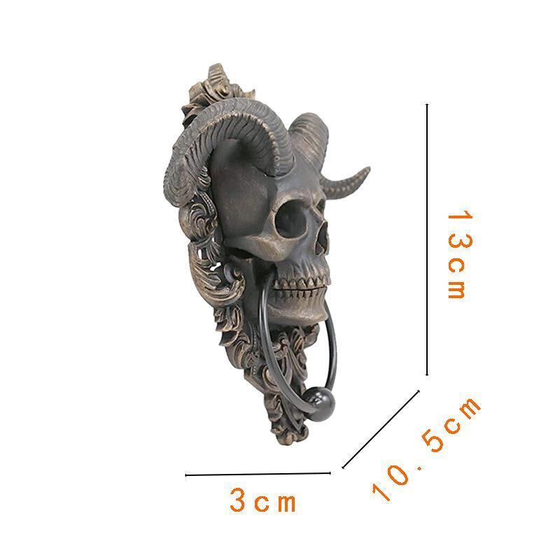 ドアノッカー 壁掛け パンク スカル ヤギ頭 サタン ホラー ゴシック インテリア オブジェ 樹脂製 レジン製 玄関用 店舗装飾 ハロウィン イースター 銅色