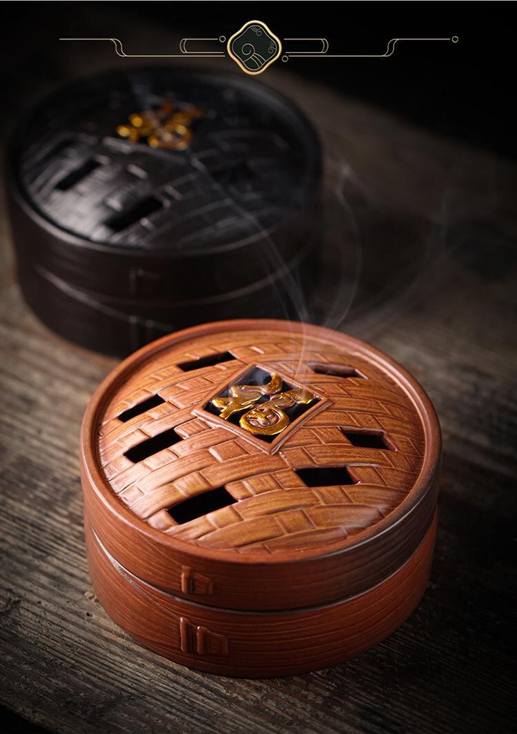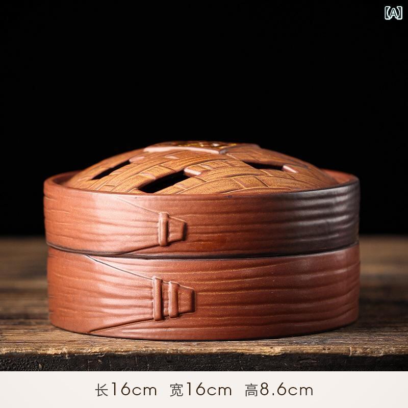 蚊取り線香入れ 陶器製 釉薬陶器 蒸籠型 室内用 おしゃれ 香炉 お香立て ブラウン ブラック 大型サイズ リビング 寝室 玄関 デスク コイル香 渦巻き線香 スティック香 アロマグッズ インテリア雑貨 置き物 和風 モダンデザイン