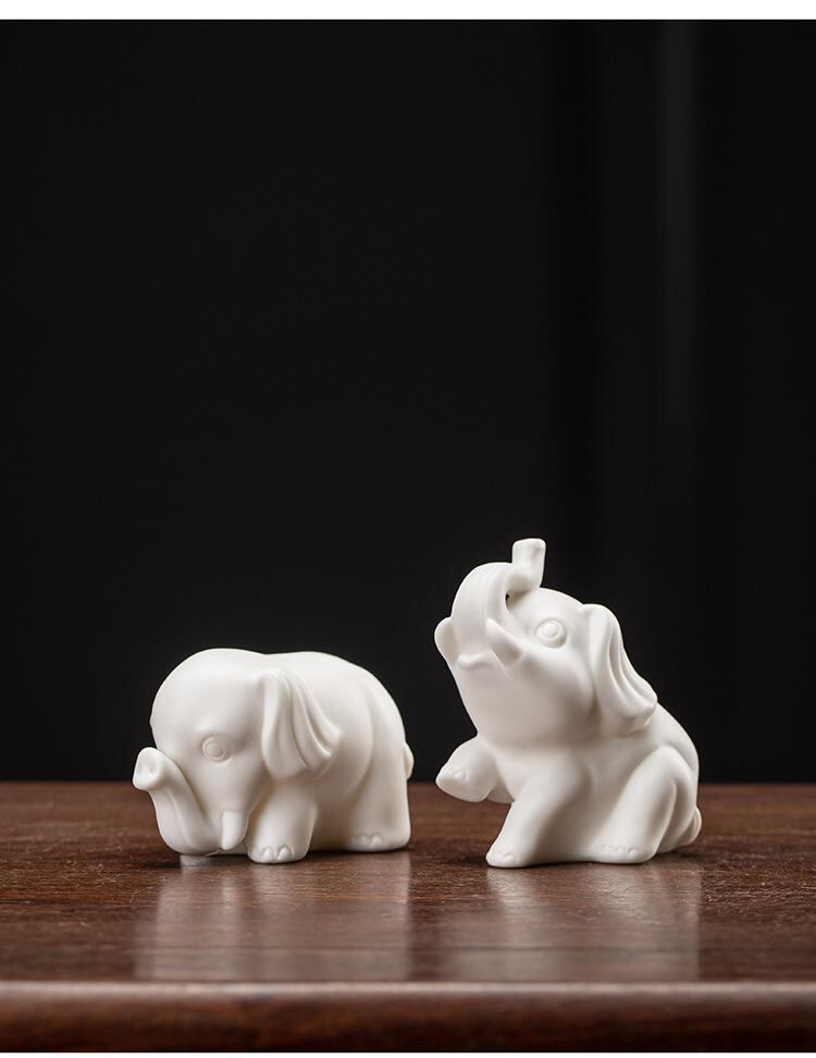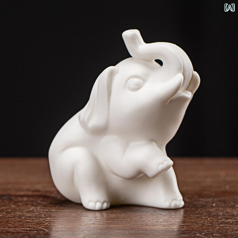 茶寵 置物 ゾウ 中国風 白陶製 茶器飾り ミニチュアオブジェ 高品質 おしゃれ かわいいインテリア 玄関 リビング 縁起物