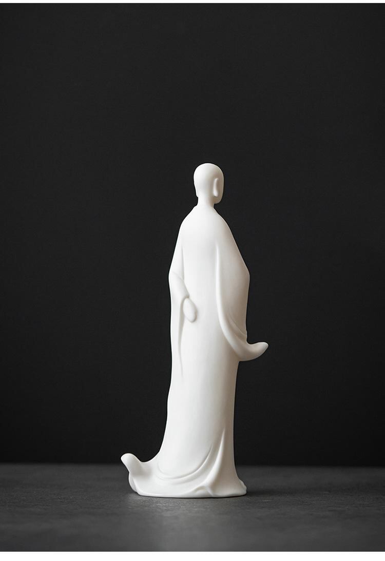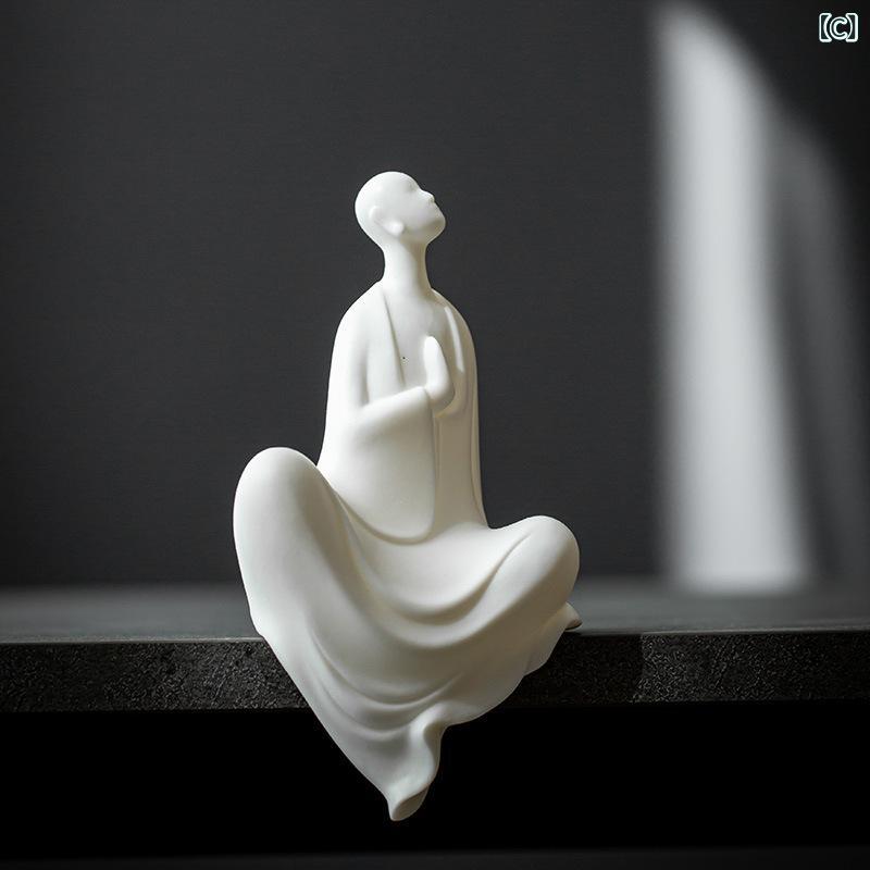 置物 禅意 無相仏 小和尚 僧侶 白磁 陶器 フィギュア オブジェ リビング 玄関 卓上 書斎 デスク オフィス インテリア 瞑想 癒し ユニーク デザイン 装飾品