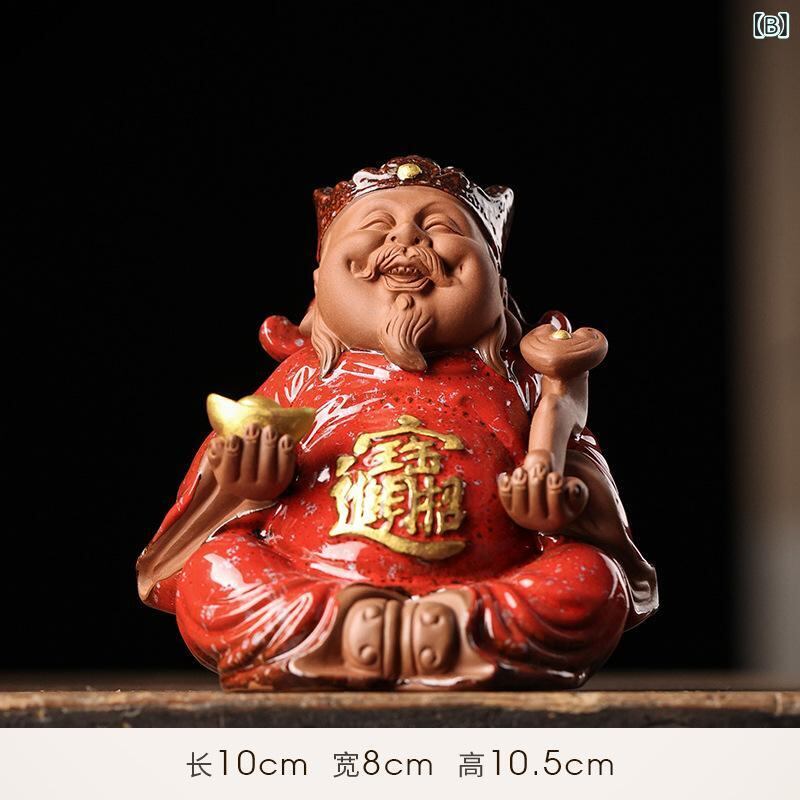 置物 財神様 福の神 紫砂陶器 高級感 中国風 開運 招財 縁起物 家庭用 オフィス 卓上 デスク飾り リビング 玄関 茶室 飾り棚 ミニオブジェ 黒陶 赤釉 座像 立像 新築祝い 開店祝い ギフト プレゼント 贈答品
