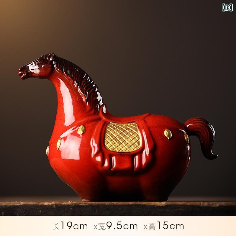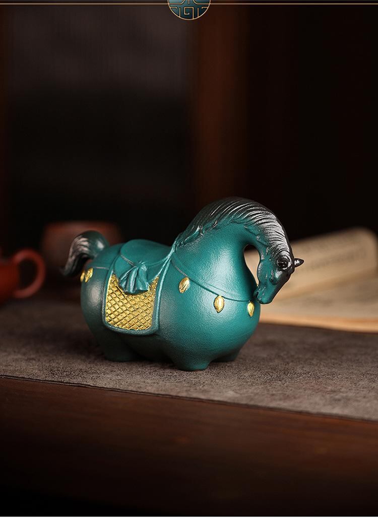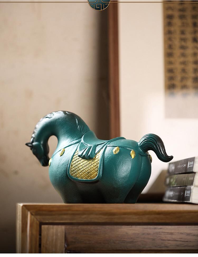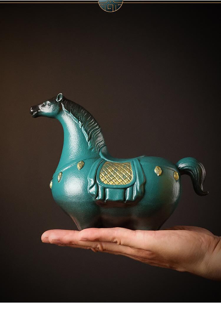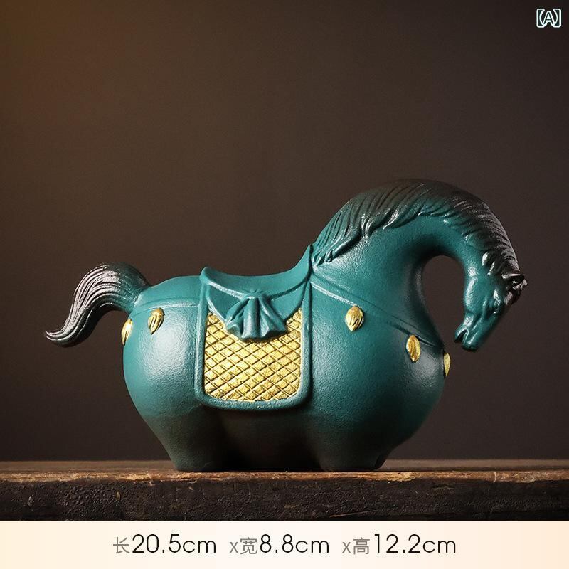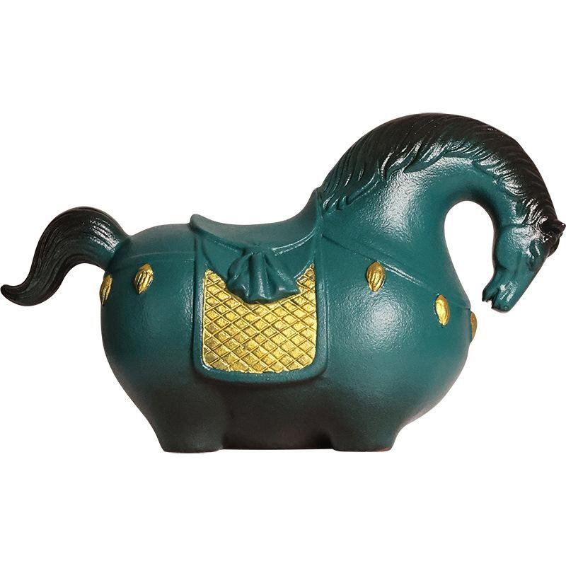 馬 釉薬陶器 中華風 唐馬 置物 縁起物 招福 開運 金運向上 インテリア 玄関 リビング 書斎 オフィス デスク装飾 グリーン