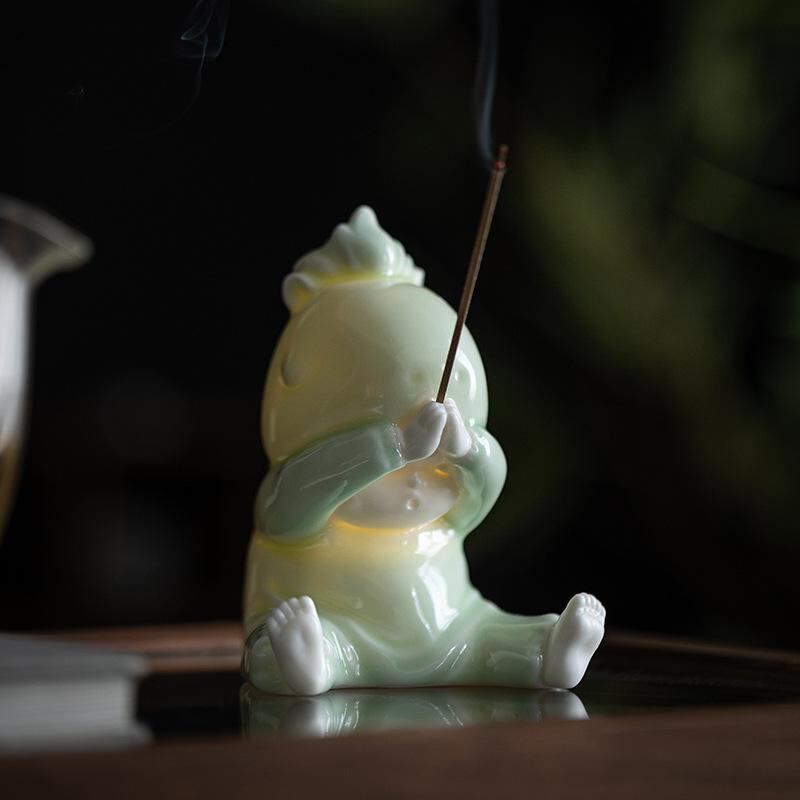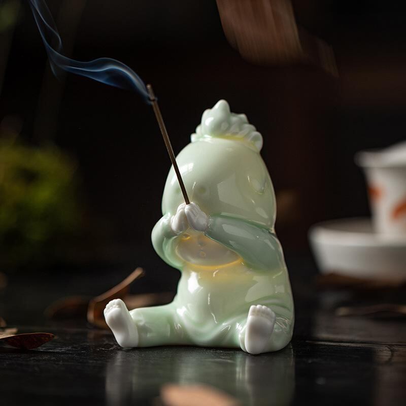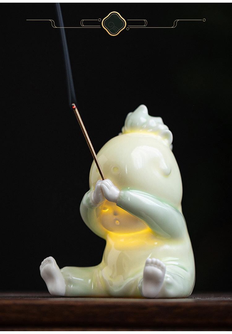 置物 開運 緑馬 陶器製 香炉 線香立て お香立て ペン立て ペン置き ライト付き 室内 オフィス デスク 家庭 書斎 玄関 おしゃれ モダン 多機能 インテリア 小物 和モダン 癒し アジアンテイスト