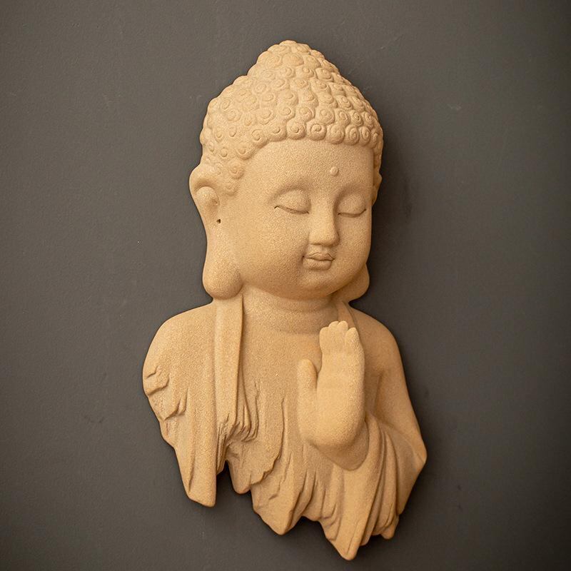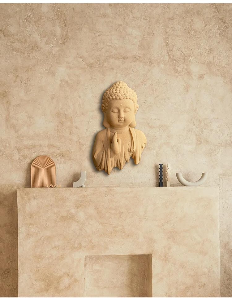 仏像 如来仏像 壁掛け 置物 陶器製 新しい中国風 禅スタイル インテリア リビング 茶室 玄関 和室 装飾 オブジェ 飾り 釉薬陶器 黄色系 グレーイエロー モダンデザイン