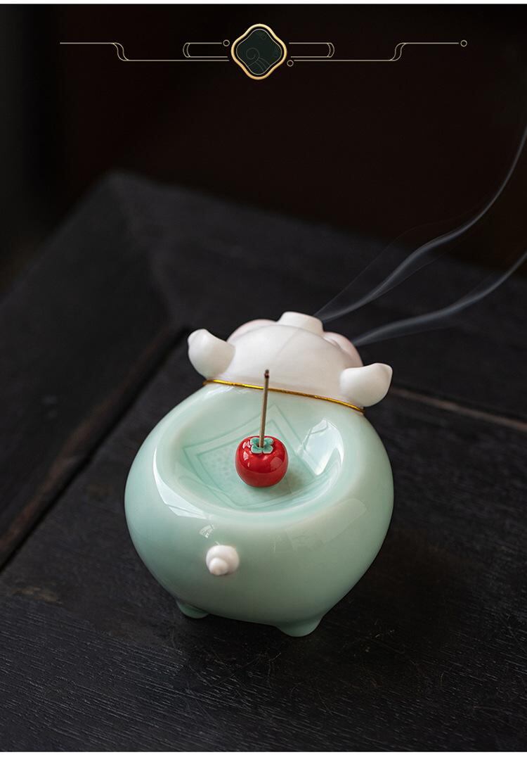 お香立て 室内用 陶器製 子豚 柿 開運 縁起物 かわいい おしゃれ 香炉 線香立て アロマ リラックス 癒やし 玄関 リビング 寝室 置物