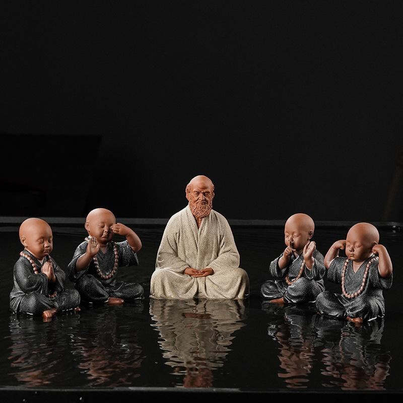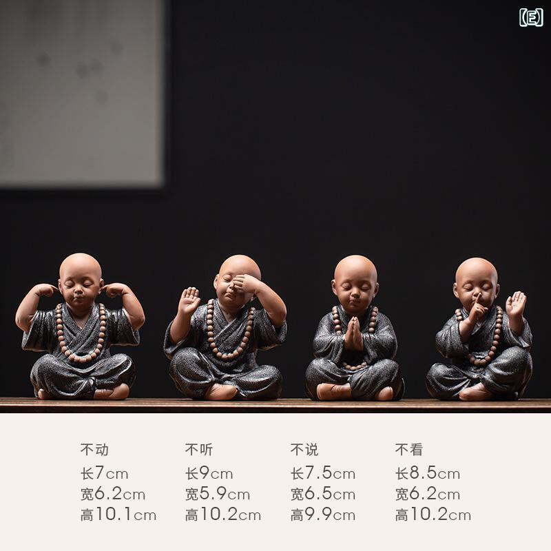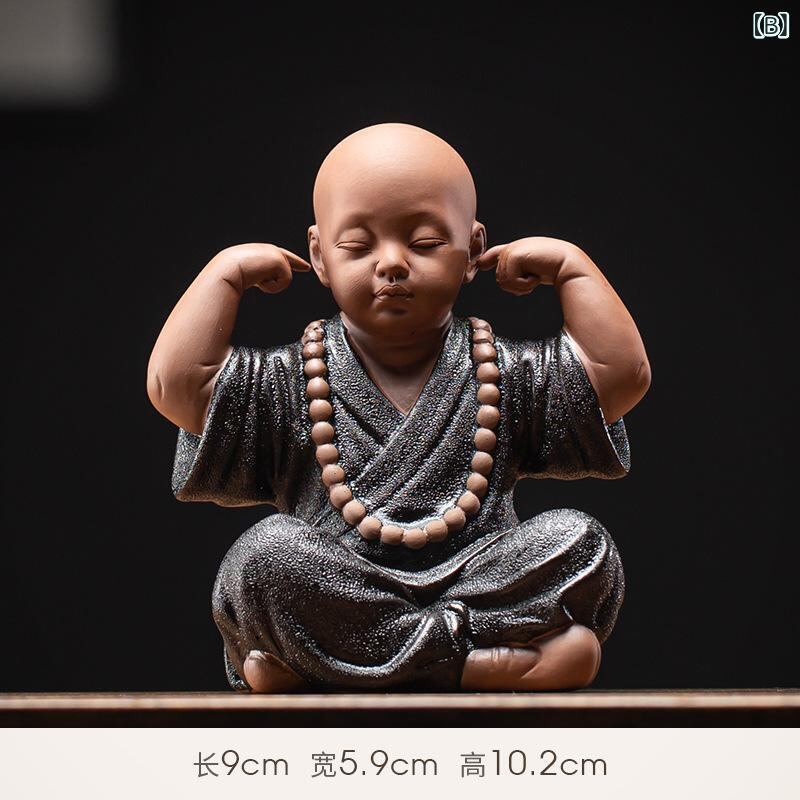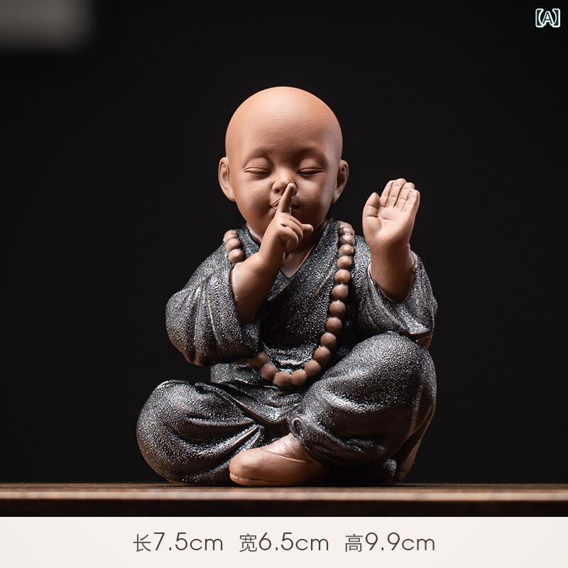 置物 陶器製 かわいい 四不の小僧 沙弥 ミニ仏像 禅意 中国風 和モダン 黒陶 オブジェ 茶室 卓上 インテリア 飾り ティーペット 癒し