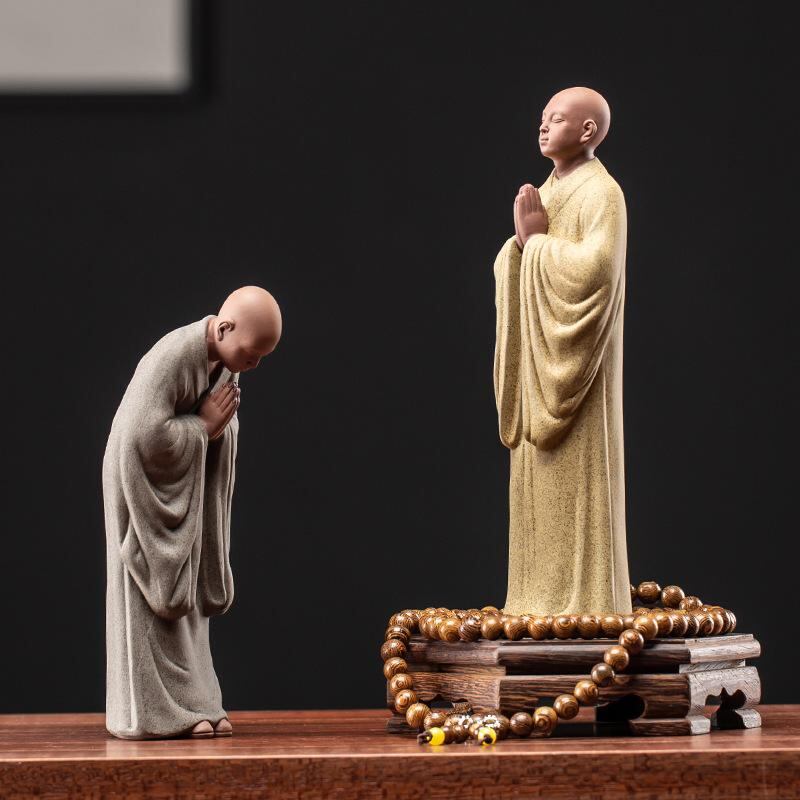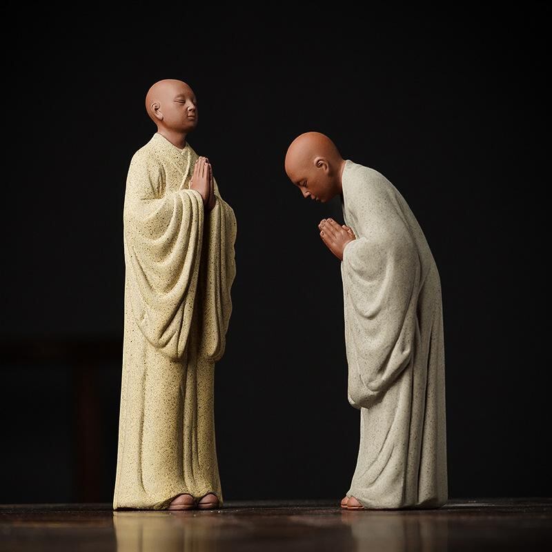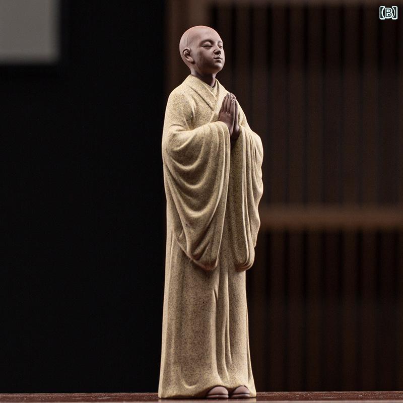 置物 和風 中国風 小坊主 小僧 紫砂 陶器 セラミック 禅 仏教 癒し 瞑想 卓上 デスク リビング 玄関 茶室 インテリア 装飾 オブジェ 飾り物 フィギュア 工芸品 手作り