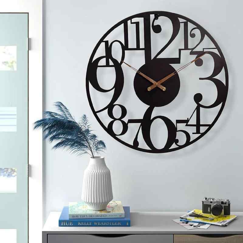 壁掛け時計 モダン 高級感 アイアン製 円形 大きい数字 リビング 寝室 書斎 オフィス 玄関 キッチン 静音 サイレント 電池式 ウォールクロック