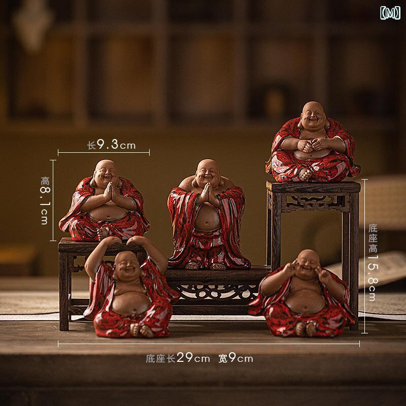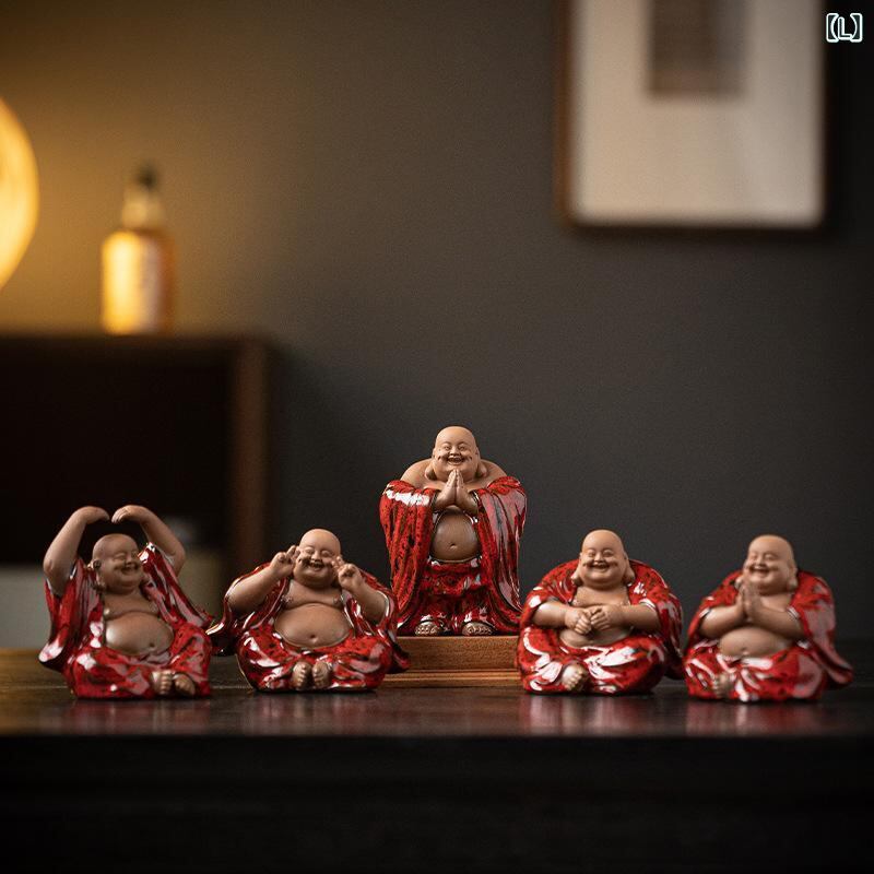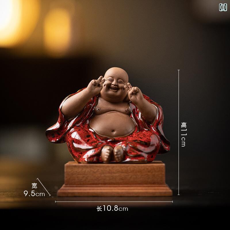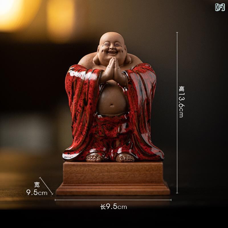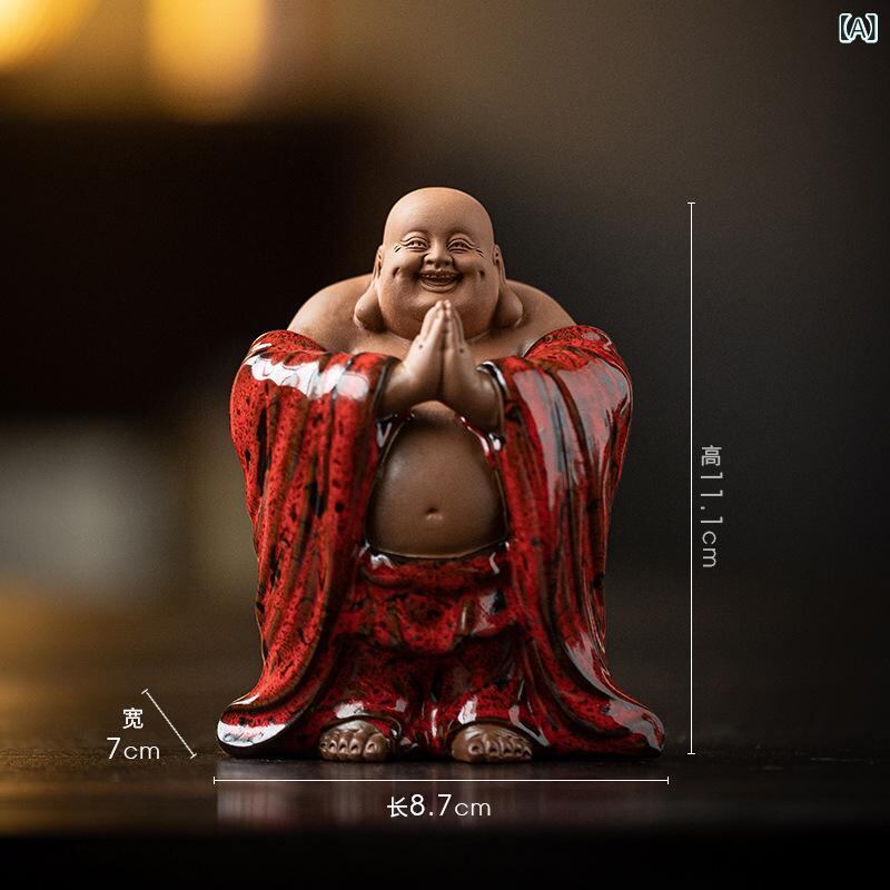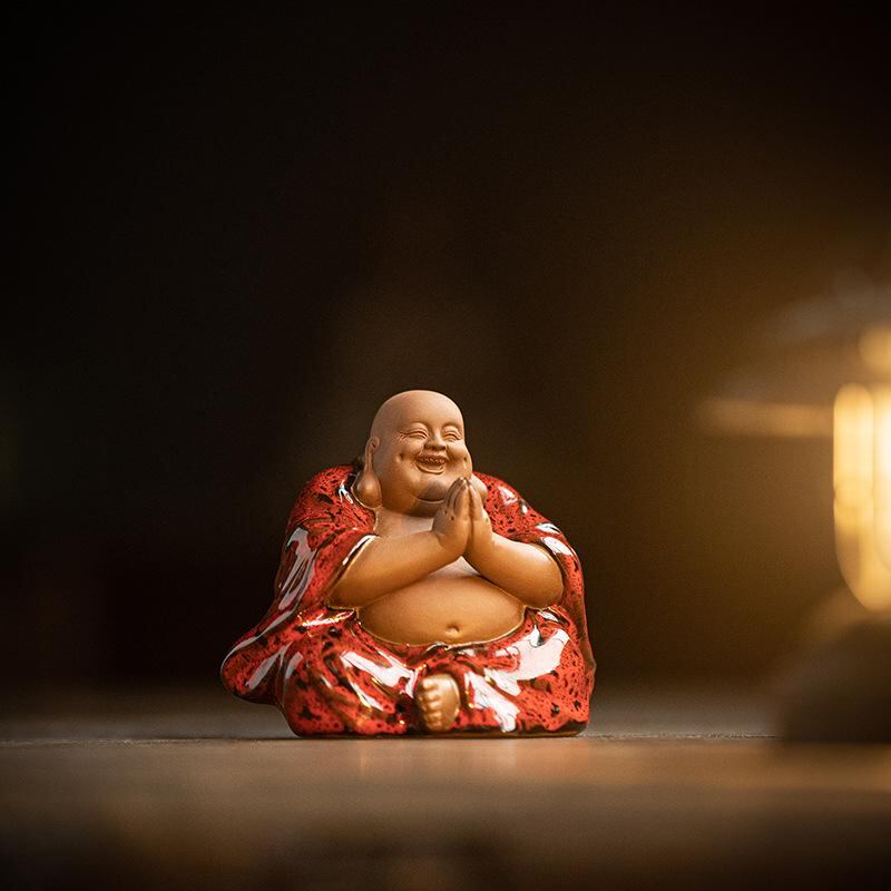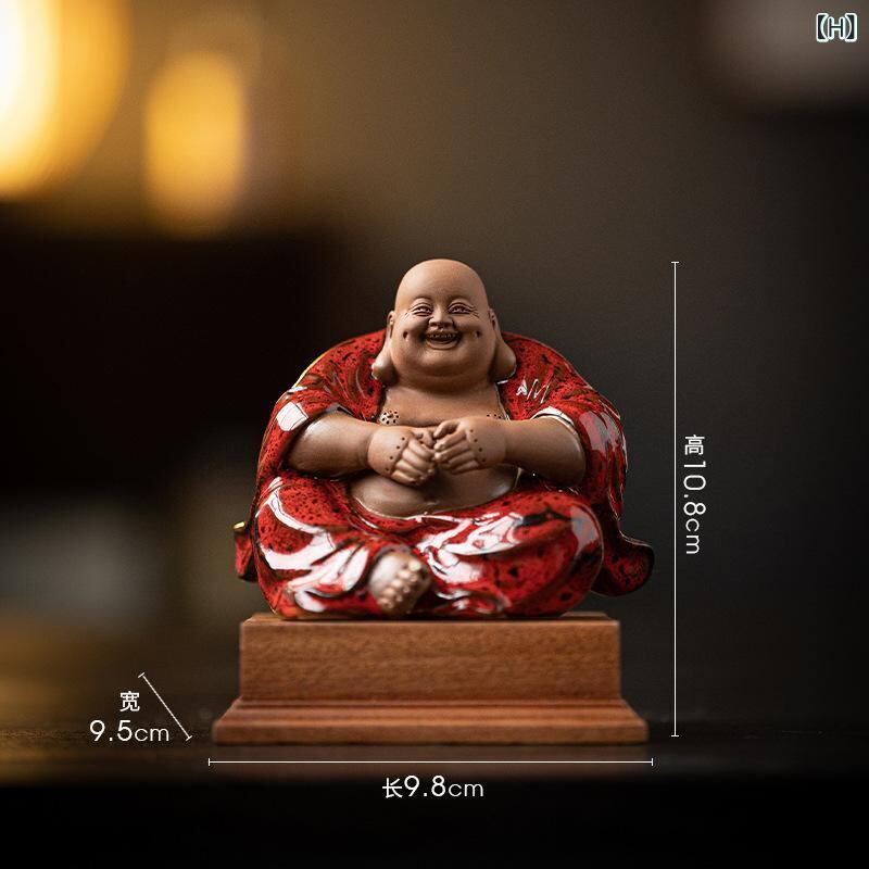 仏像 陶磁器 弥勒菩薩 布袋様 置物 金運招福 縁起物 福々しい笑顔 中国風 禅スタイル リビング 卓上 茶席飾り 茶道具 インテリア装飾品