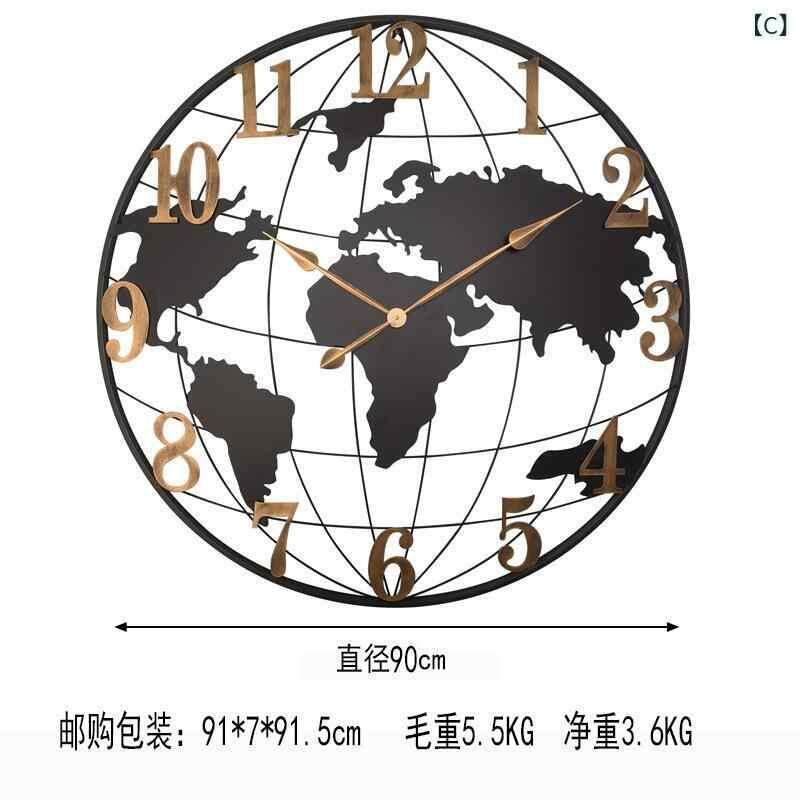 掛け時計 アメリカン インダストリアル リビング 玄関 店舗 オフィス レトロ ヴィンテージ アイアン 立体地図 ワールドマップ 数字表示 スタイリッシュ ウォールクロック