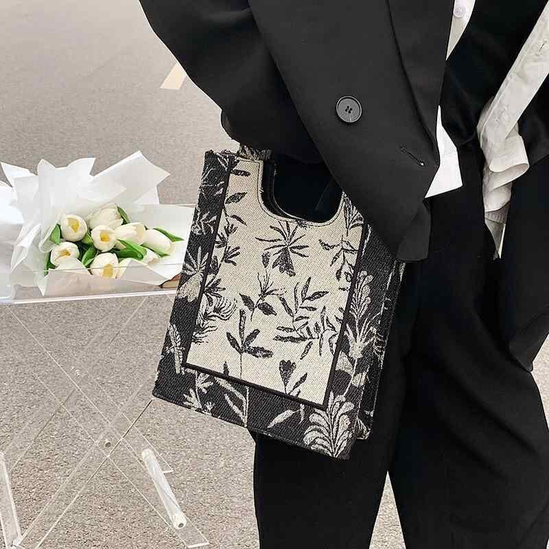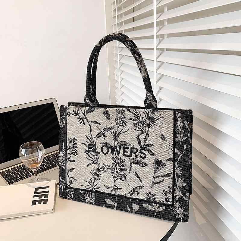 バッグ レディース おしゃれ キャンバス 刺繍 ジャガード トート鞄 大容量 個性的 通勤 肩掛け ショルダーバッグ ブラック 横型 マグネット開閉 普段使い デイリーユース