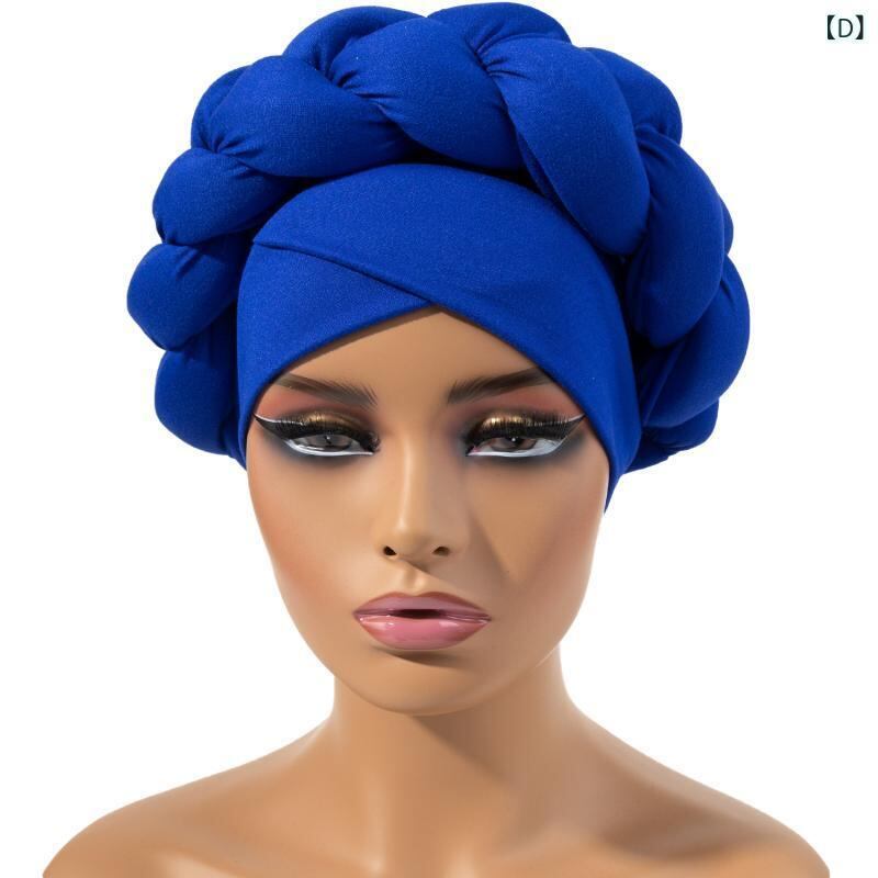 ターバン レディース 大きな編み込み ヘッドスカーフ キャップ 再生繊維 ポリエステル 無地 クッション入り ボヘミアン エスニック 個性的 UV対策 通気性