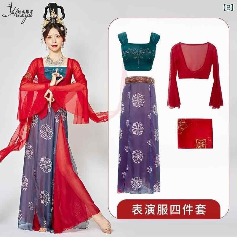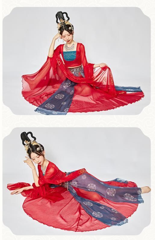 漢服 レディース 古典舞踊 敦煌飛天 ダンス衣装 舞台衣装 発表会 エレガント 仙女風 軽やか 優雅 異国風 エキゾチック ロング丈 再生繊維 テンセル スパンデックス セット